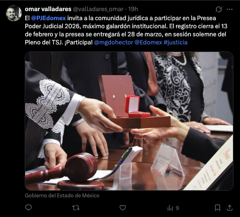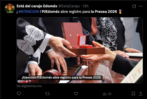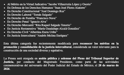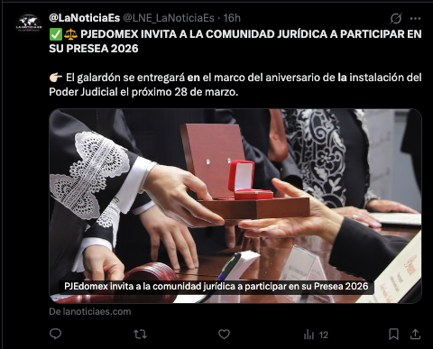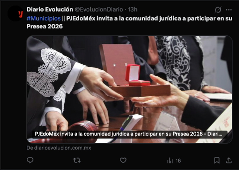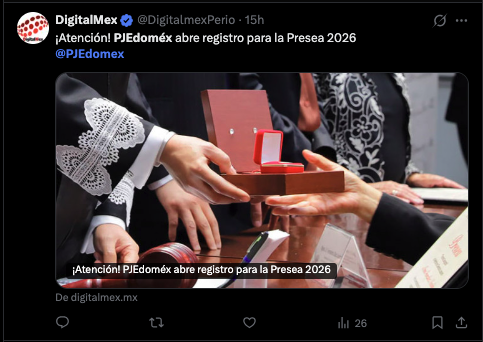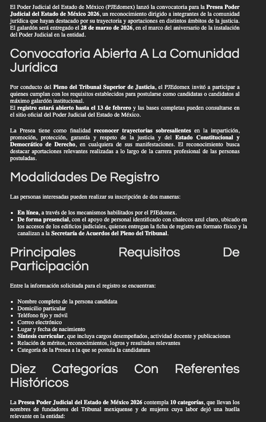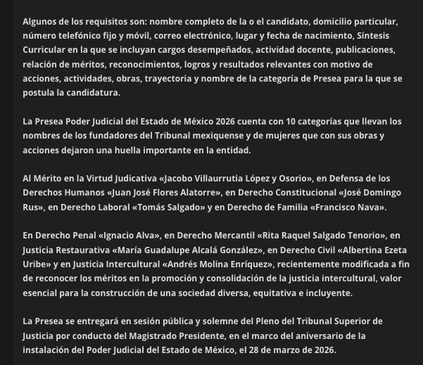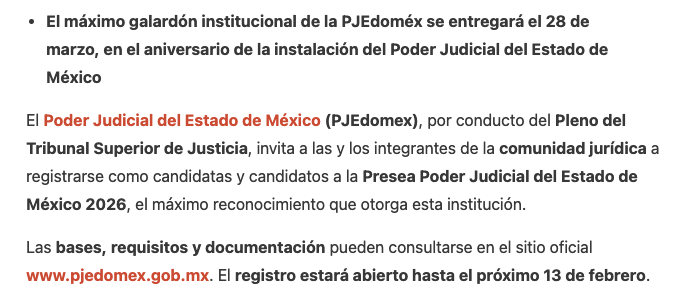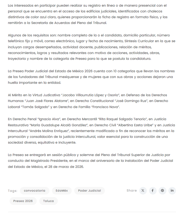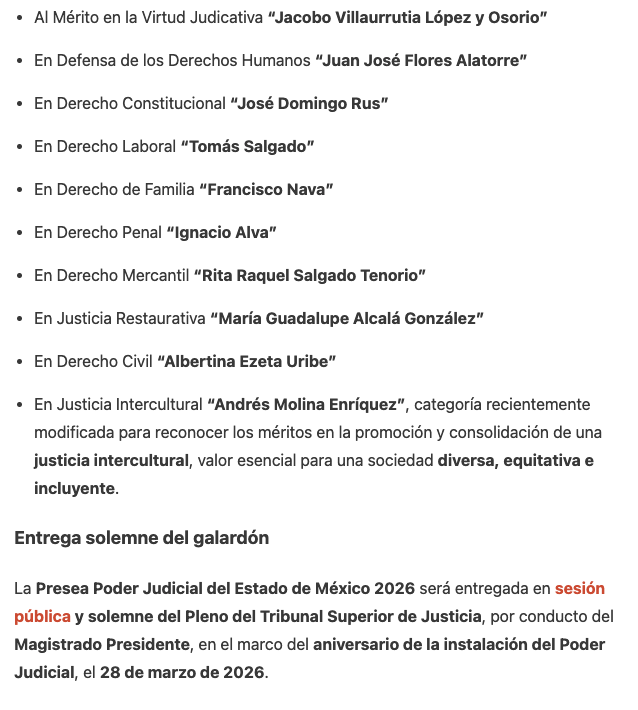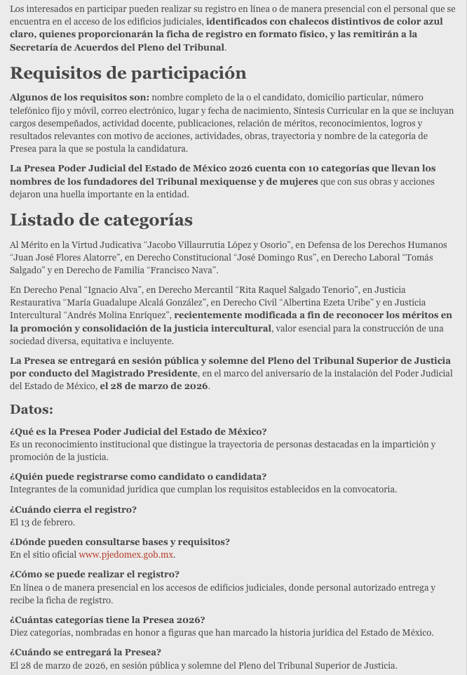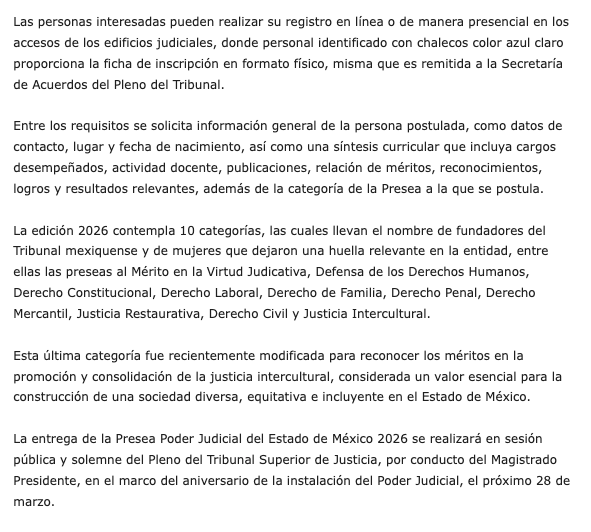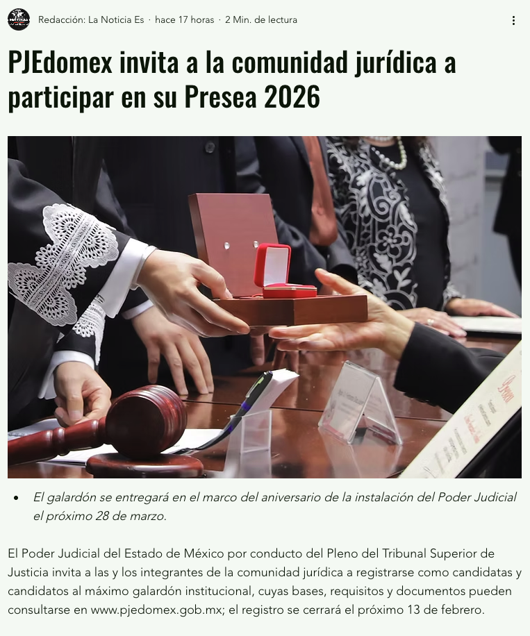 - https://mvt.com.mx/pjedomex-convoca-a-la-comunidad-juridica-a-participar-en-la-presea-poder-judicial-2026/