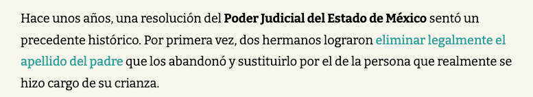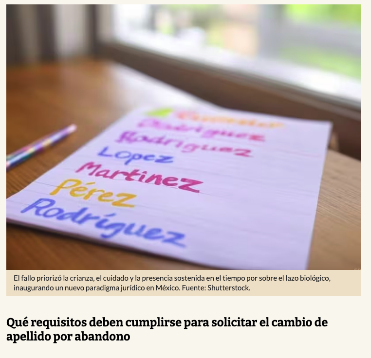Hace unos años, una resolución del Poder Judicial del Estado de México sentó un precedente histórico. Por primera vez, dos hermanos lograron eliminar legalmente el apellido del padre que los abandonó y sustituirlo por el de la persona que realmente se hizo cargo de su crianza.