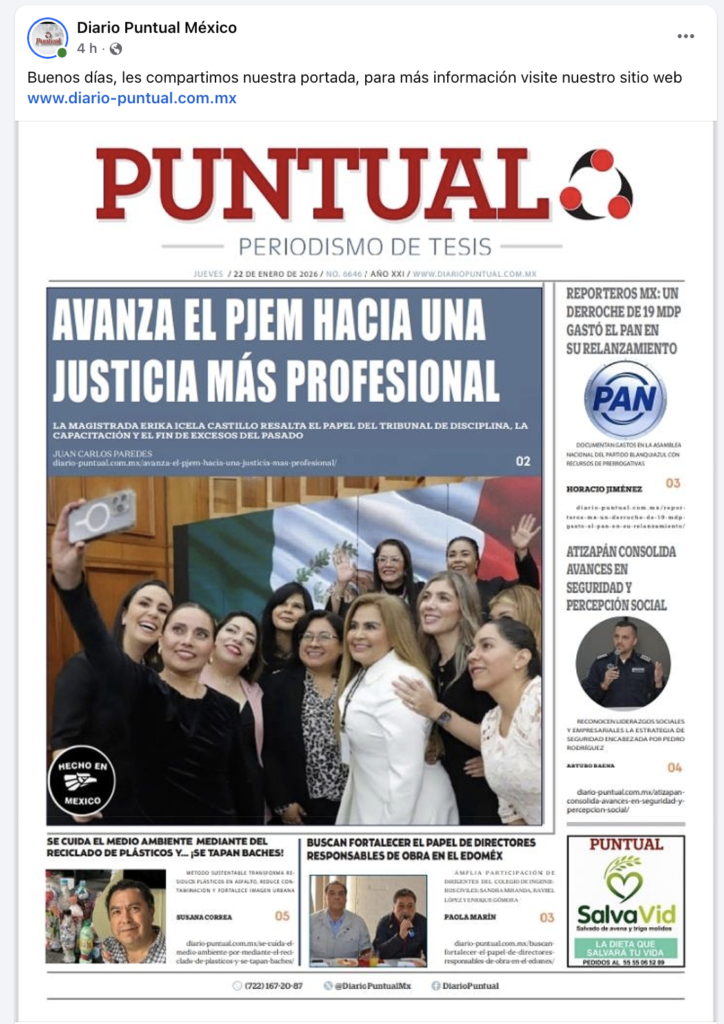 - https://www.facebook.com/DiarioPuntualMx/posts/pfbid0SqdWbiv8BSoF92hTEFwAqfkgXJLngRMyLXc3k2Btqpsf9vmMNoMVFcNzwnKdQytFl