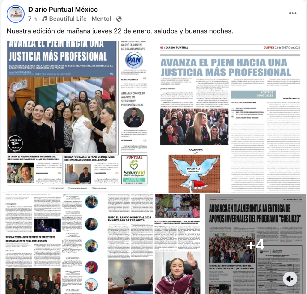 - https://www.facebook.com/DiarioPuntualMx/posts/pfbid02q4xsxS4JvLfwwpiB7yL9jHcX2AfYJUXhNk26W2Nqe5mefHVxDaLeffbtDTAw39kfl