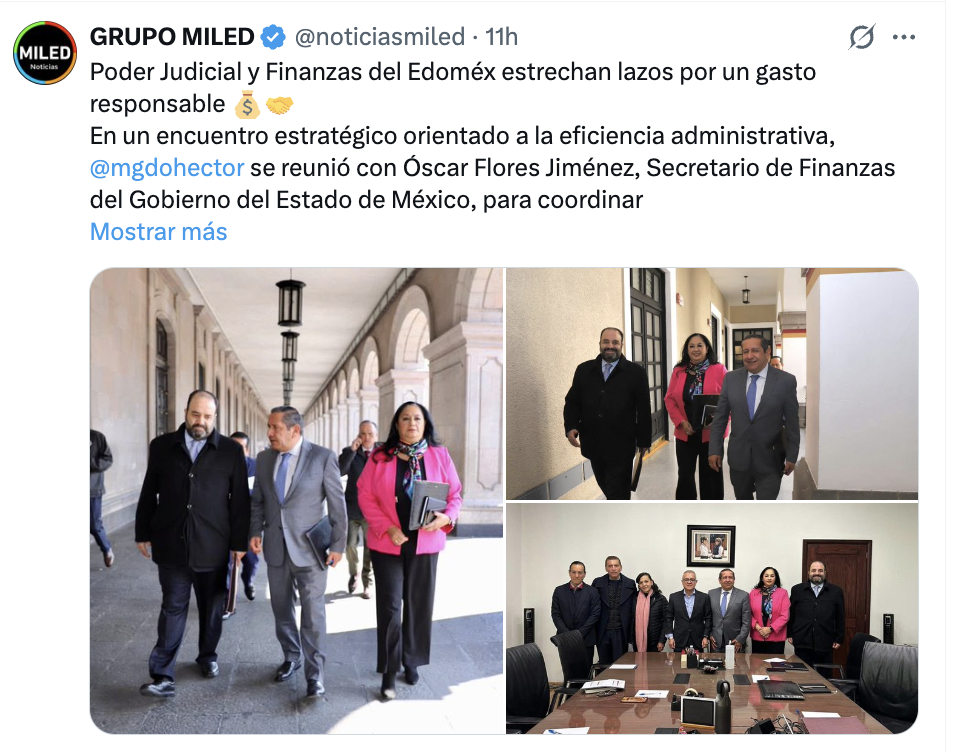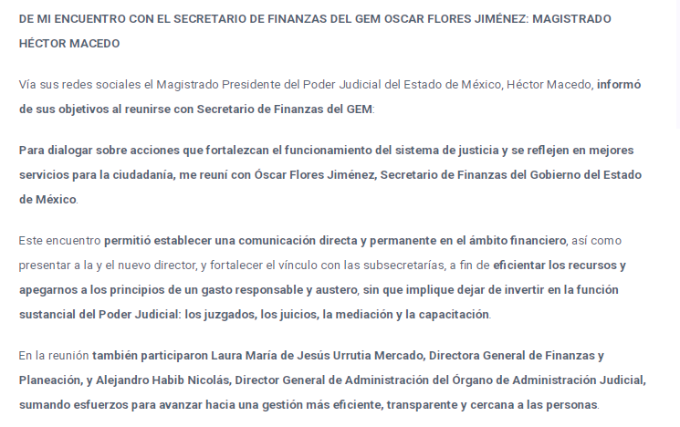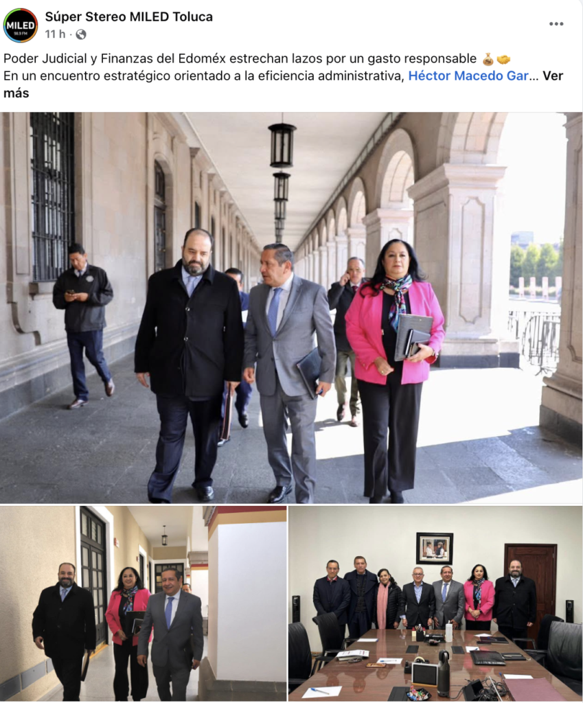 Vía sus redes sociales el Magistrado Presidente del Poder Judicial del Estado de México, Héctor Macedo, informó de sus objetivos al reunirse con Secretario de Finanzas del GEM: