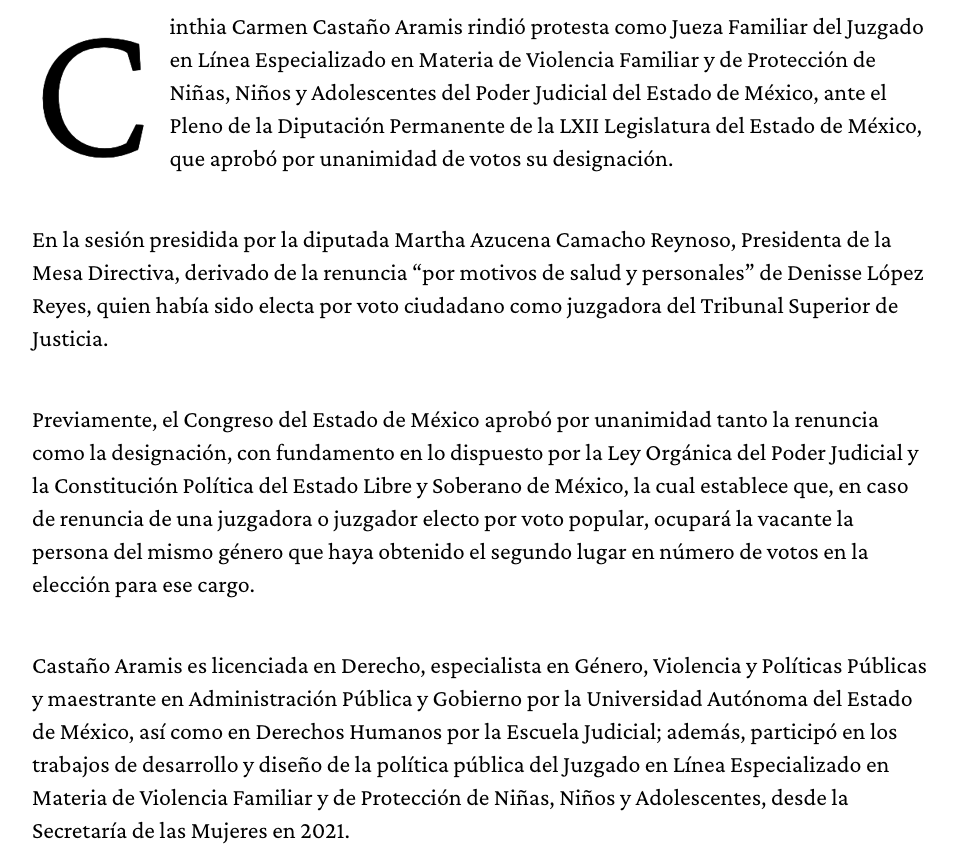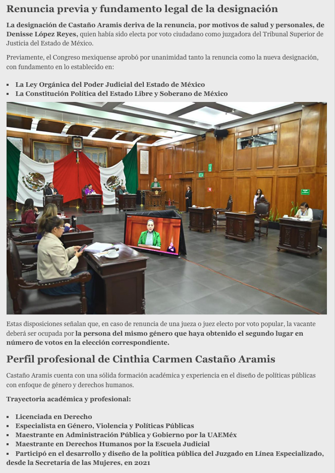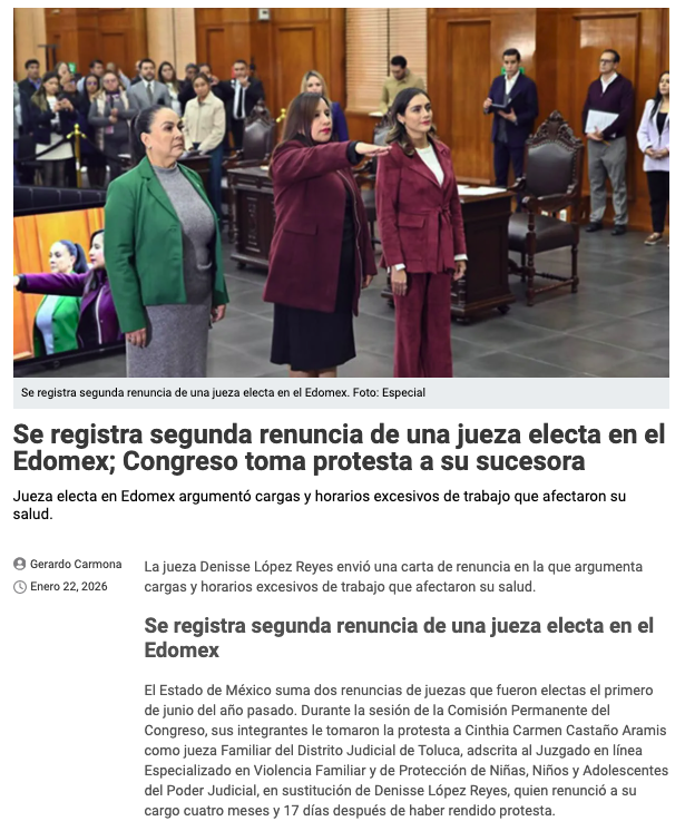 - https://ultranoticias.com.mx/legislatura-renuncia-segunda-jueza-electa-por-voto-popular-en-edomex/