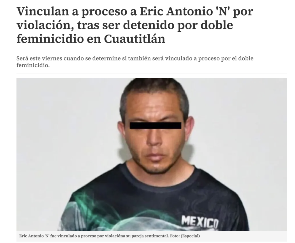 Vinculan a proceso a Eric Antonio ‘N’ por violación, tras ser detenido por doble feminicidio en Cuautitlán