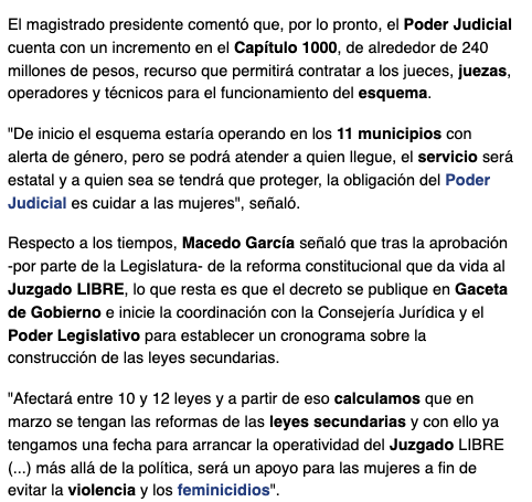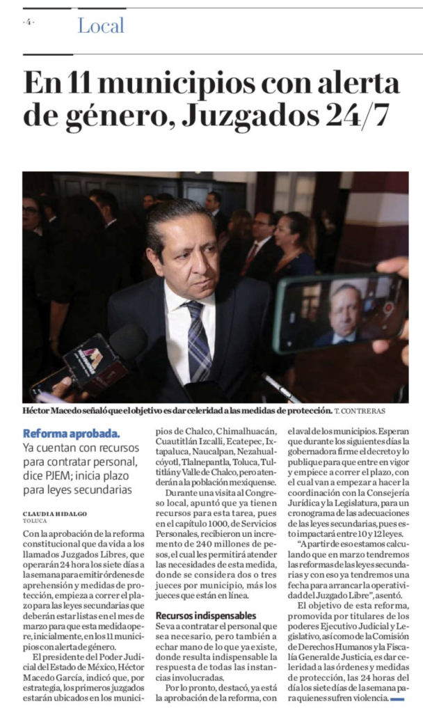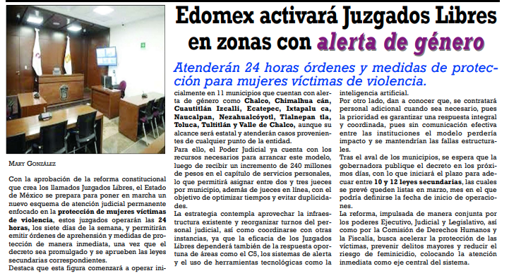 • https://www.milenio.com/policia/juzgados-libres-operaran-en-municipios-de-edomex-con-alerta-de-genero