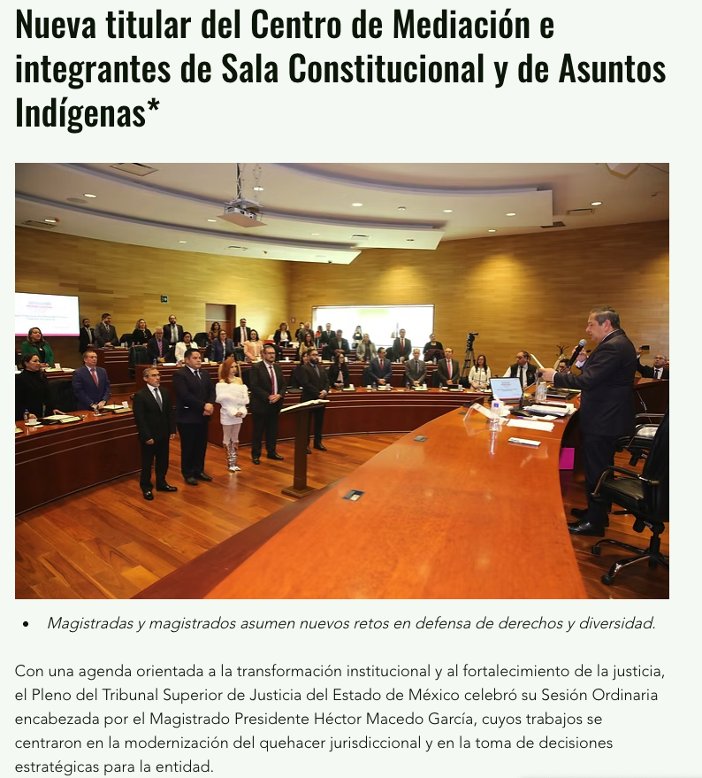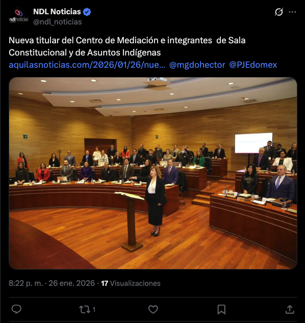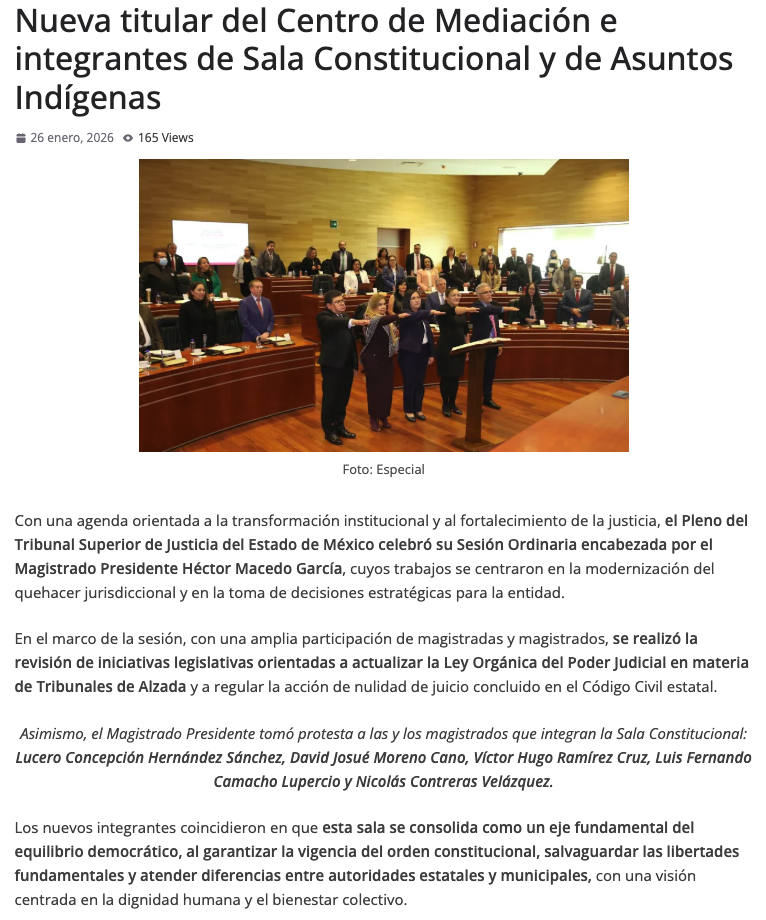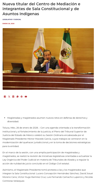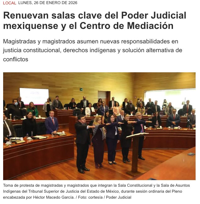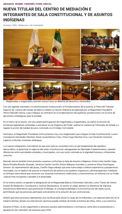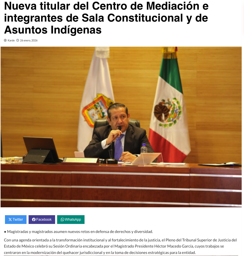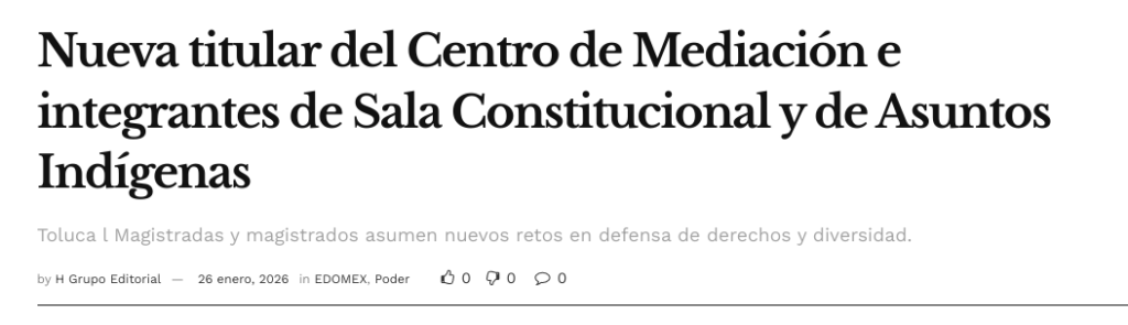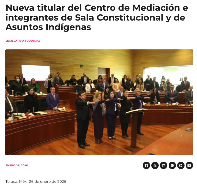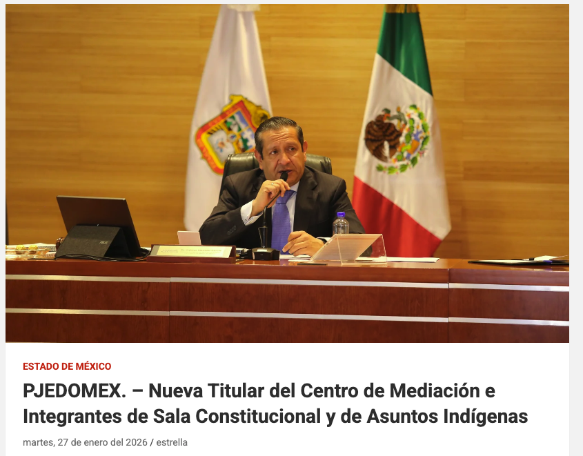 - https://agendainformativa.com.mx/2026/27/01/pjedomex-nueva-titular-del-centro-de-mediacion-e-integrantes-de-sala-constitucional-y-de-asuntos-indigenas/
