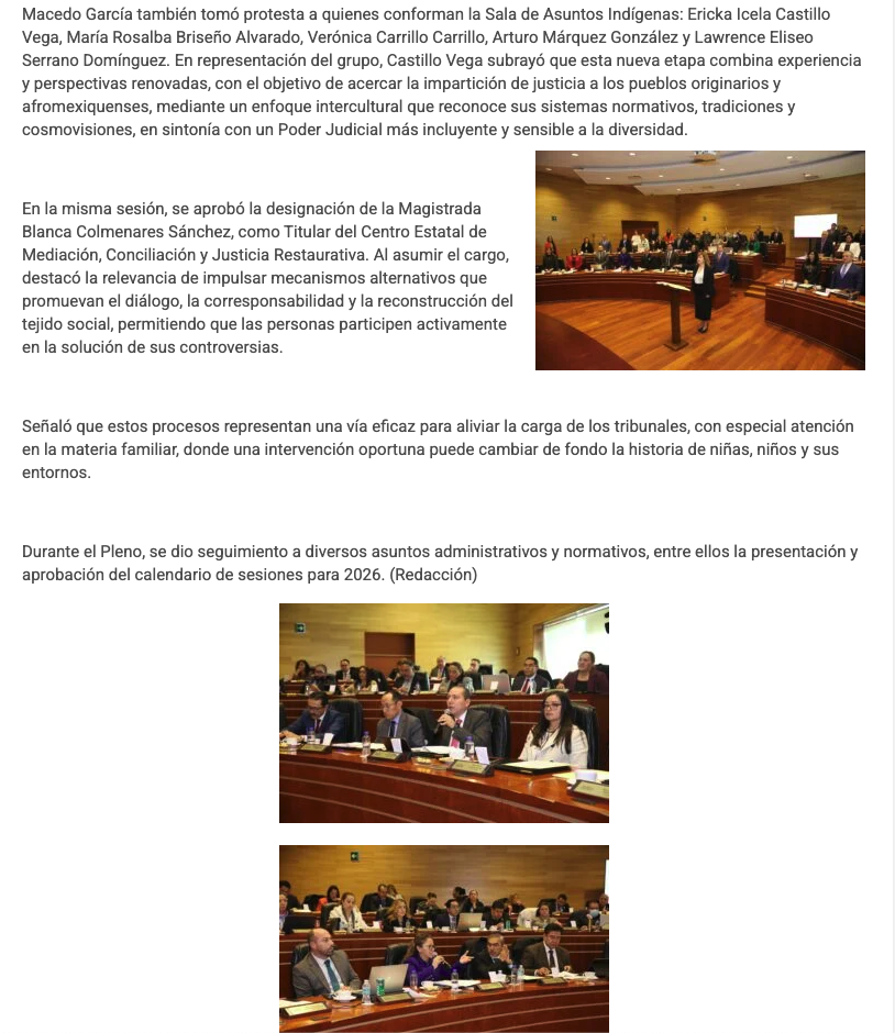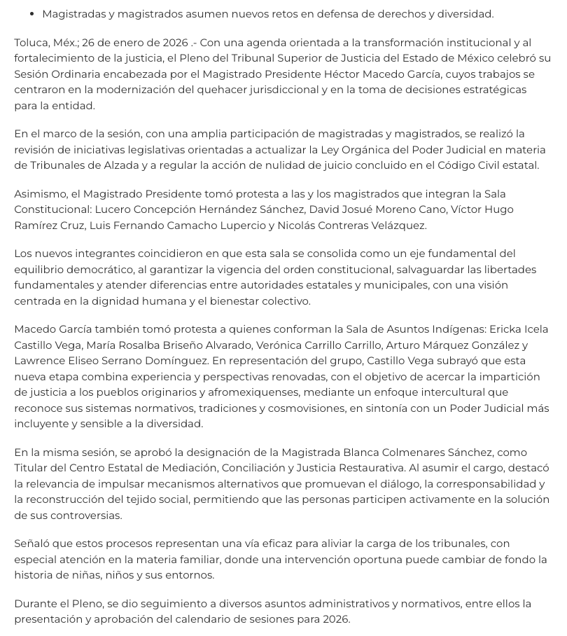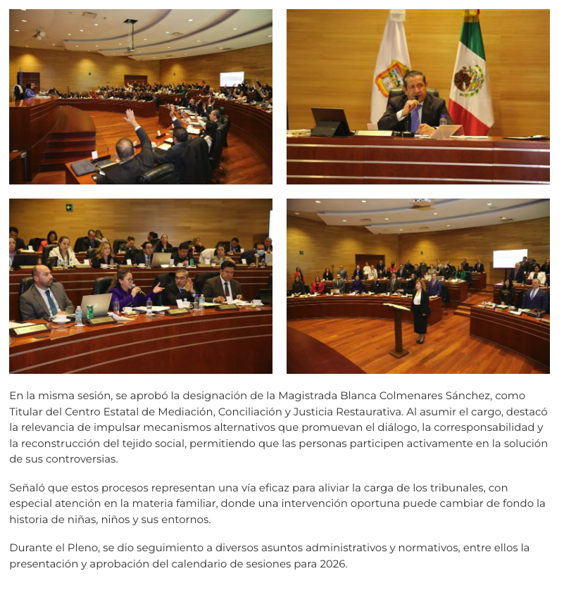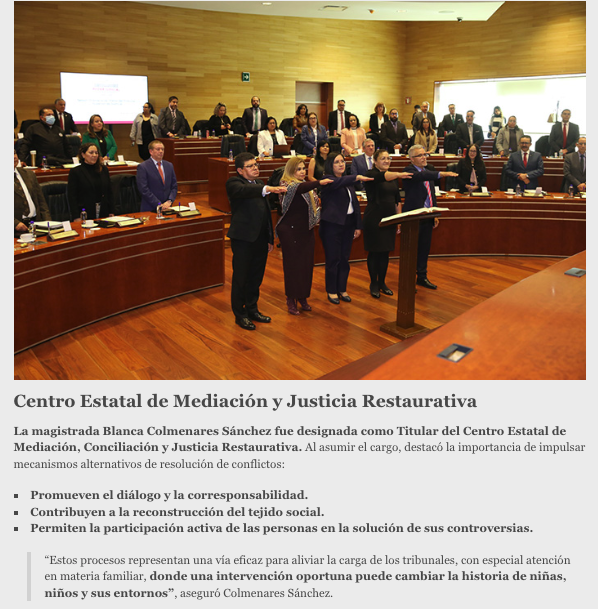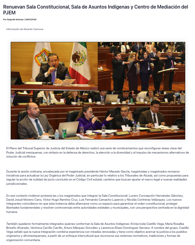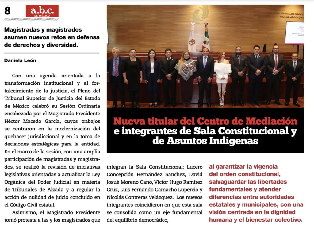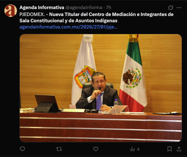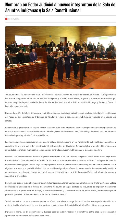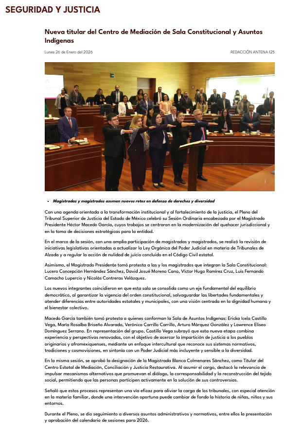 - https://agendainformativa.com.mx/2026/27/01/pjedomex-nueva-titular-del-centro-de-mediacion-e-integrantes-de-sala-constitucional-y-de-asuntos-indigenas/