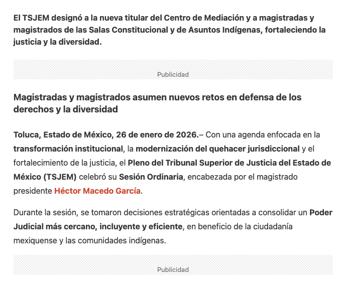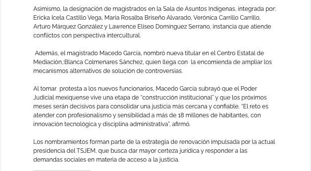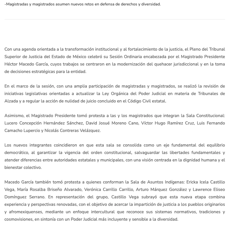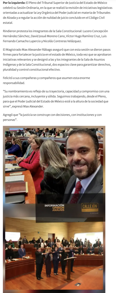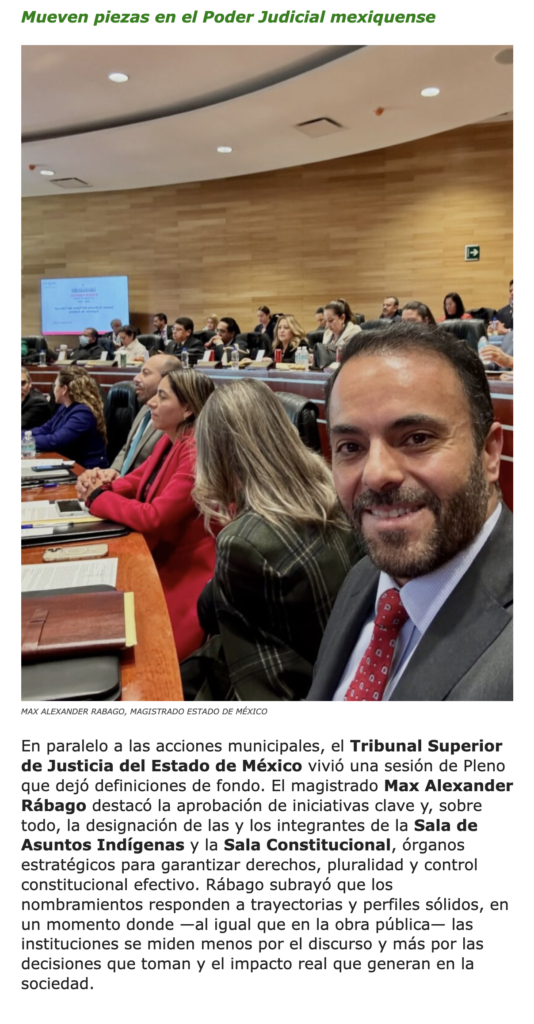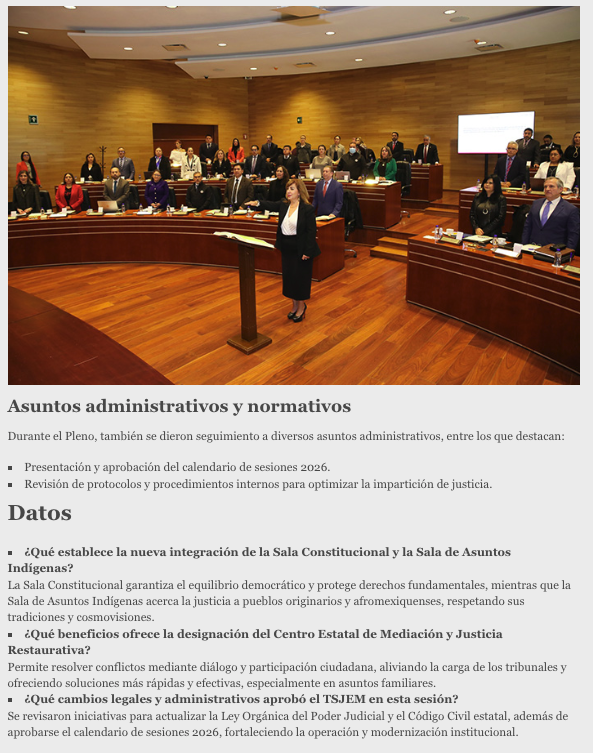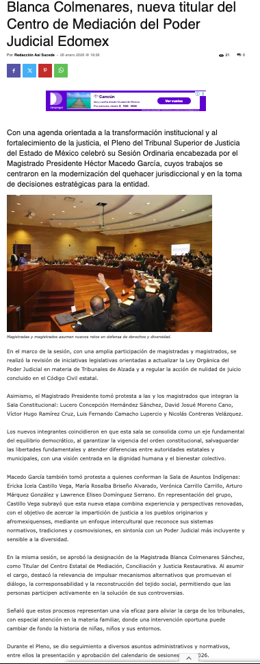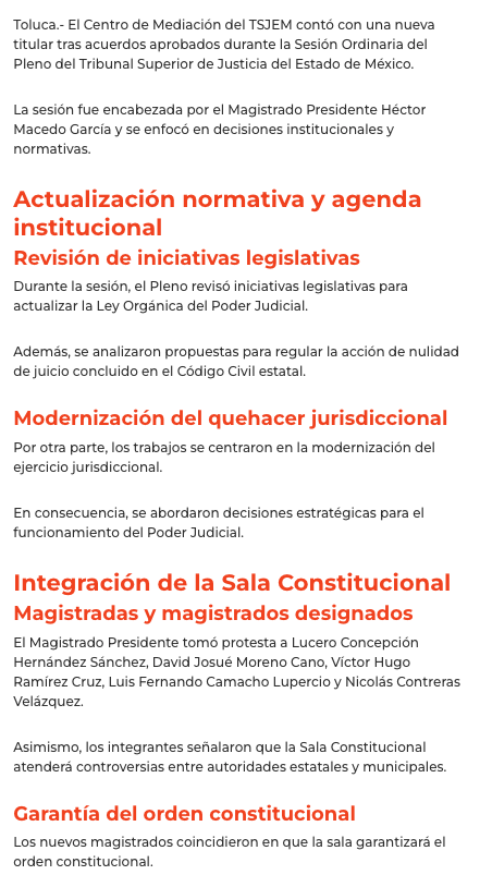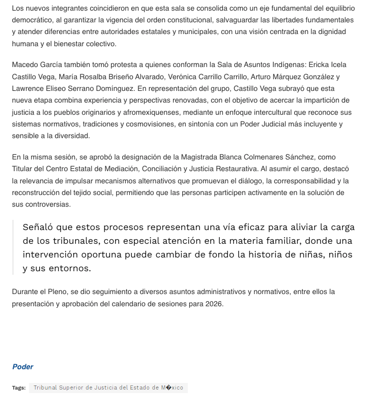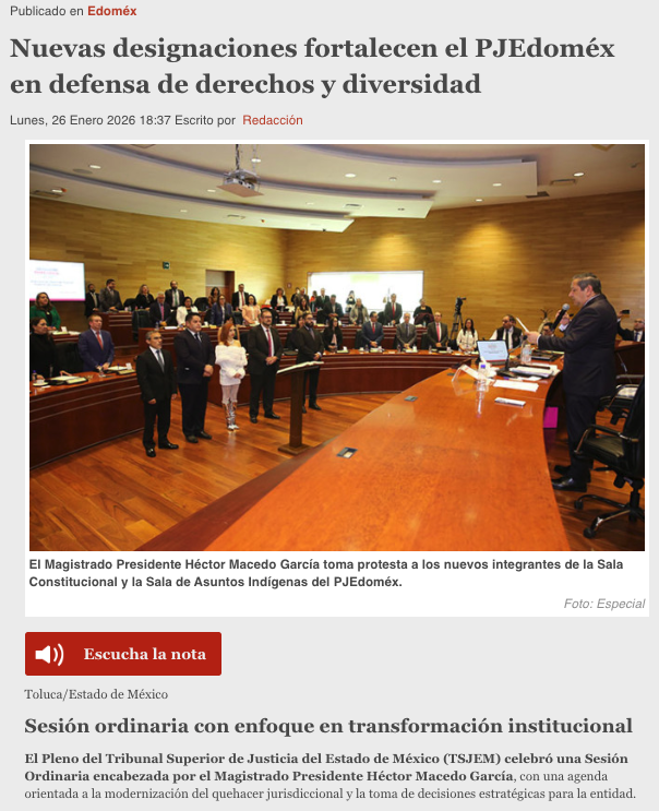- https://agendainformativa.com.mx/2026/27/01/pjedomex-nueva-titular-del-centro-de-mediacion-e-integrantes-de-sala-constitucional-y-de-asuntos-indigenas/