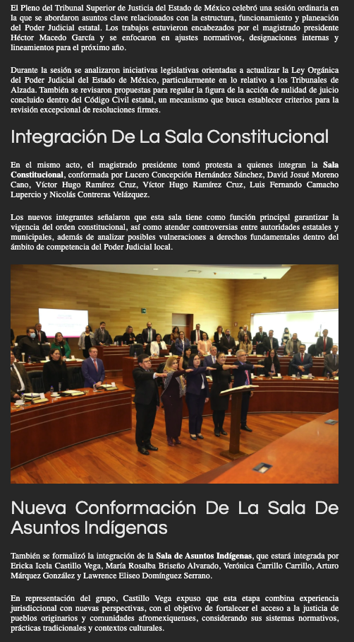 - https://www.capitaledomex.com.mx/local/tribunal-de-justicia-del-edomex-toma-protesta-a-salas-constitucional-e-indigenas/