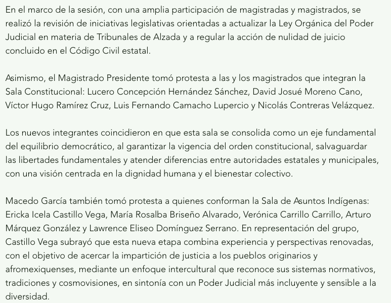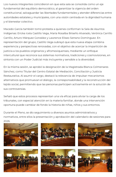 - https://epigrafenoticias.com/renuevan-sala-constitucional-sala-de-asuntos-indigenas-y-centro-de-mediacion-del-pjem/