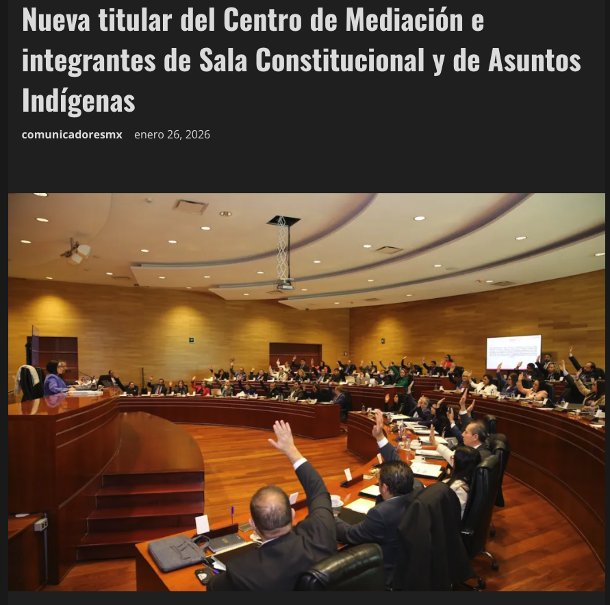 - https://comunicadores.mx/2026/01/26/nueva-titular-del-centro-de-mediacion-e-integrantes-de-sala-constitucional-y-de-asuntos-indigenas/