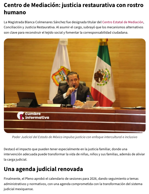 - https://cumbreinformativa.com/poder-judicial-del-estado-de-mexico-impulsa-justicia-con-enfoque-intercultural-e-inclusivo/