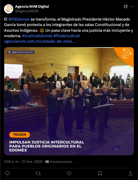 - https://agencianvm.com.mx/estado-de-mexico/impulsan-justicia-intercultural-para-pueblos-originarios-en-el-edomex.html