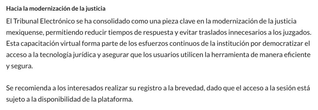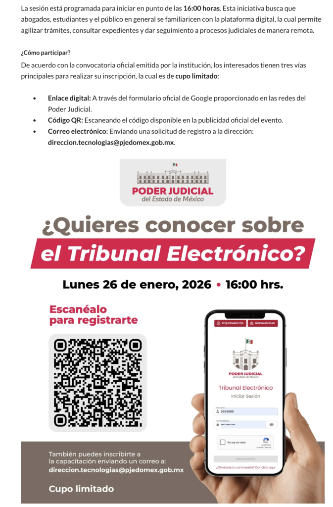 - https://edomexahora.com/2026/01/26/pj-edomex-ofrecera-capacitacion-virtual-sobre-el-uso-del-tribunal-electronico/
