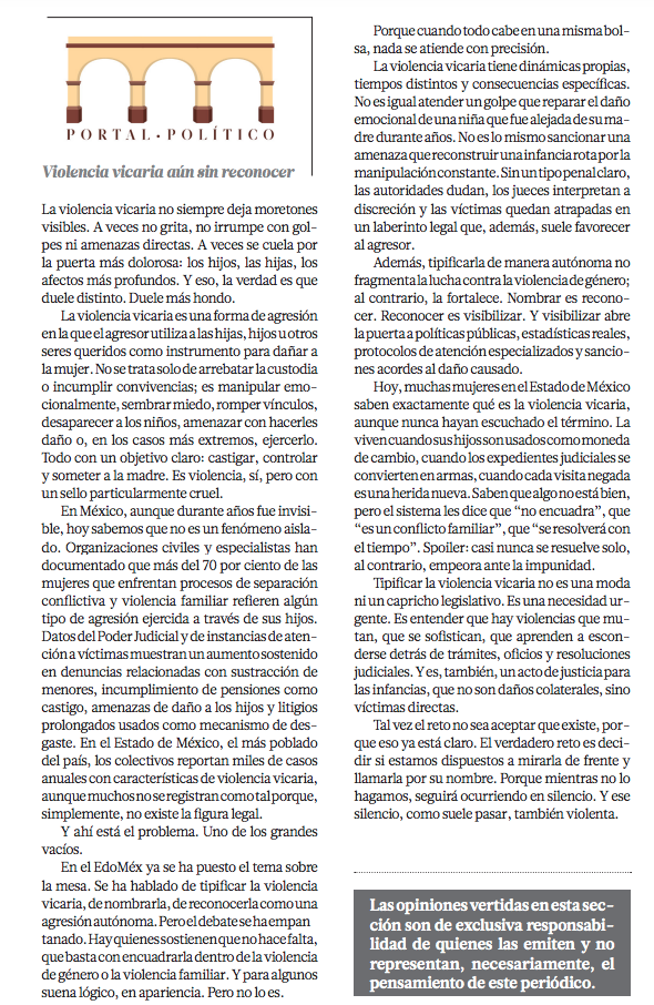 Violencia vicaria aún sin reconocer – Martha Gonzalez Aguilera