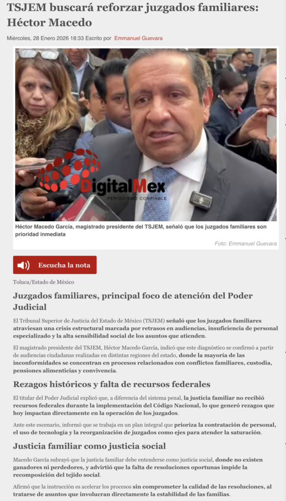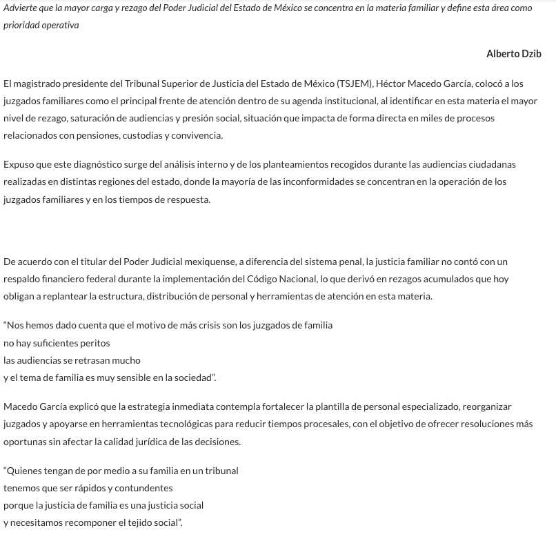 - https://digitalmex.mx/estado-de-mexico/story/64537/tsjem-buscara-reforzar-juzgados-familiares-hector-macedo
