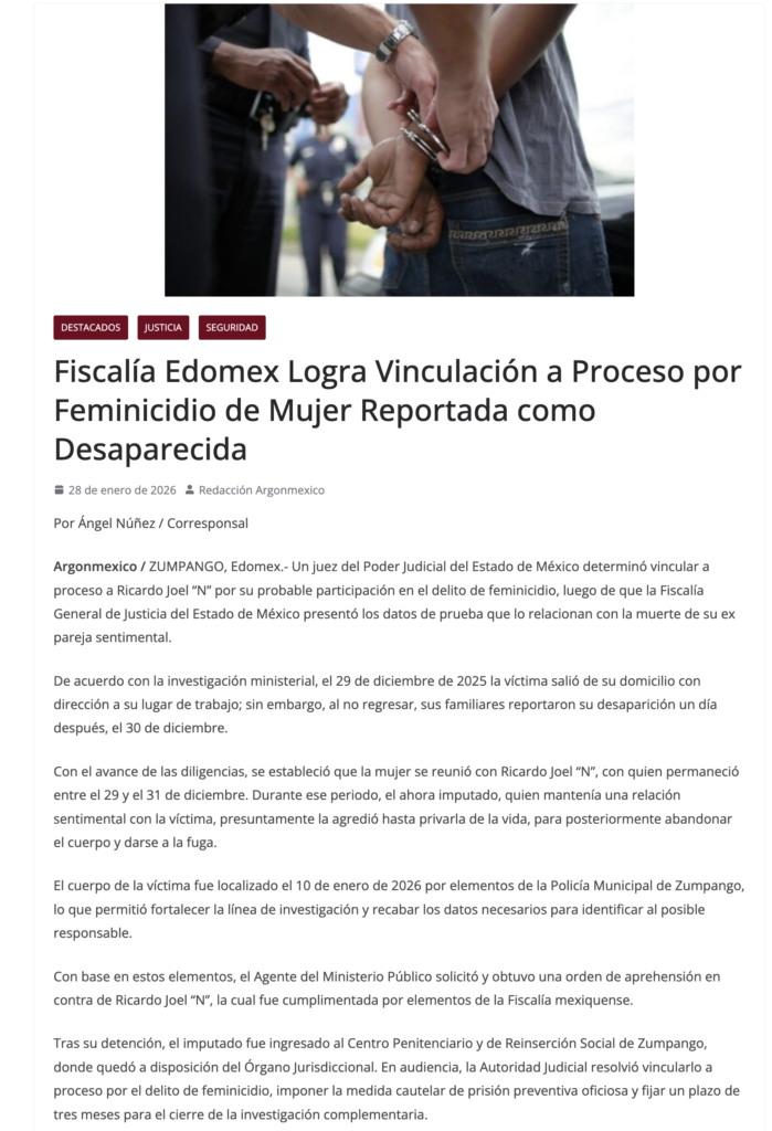 • https://argonmexico.com/2026/01/28/fiscalia-edomex-logra-vinculacion-a-proceso-por-feminicidio-de-mujer-reportada-como-desaparecida/
