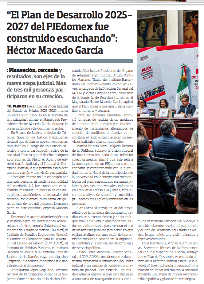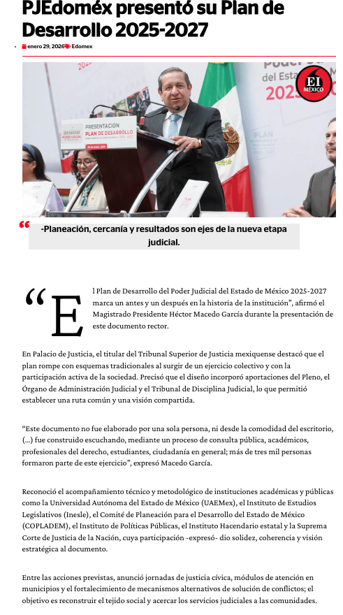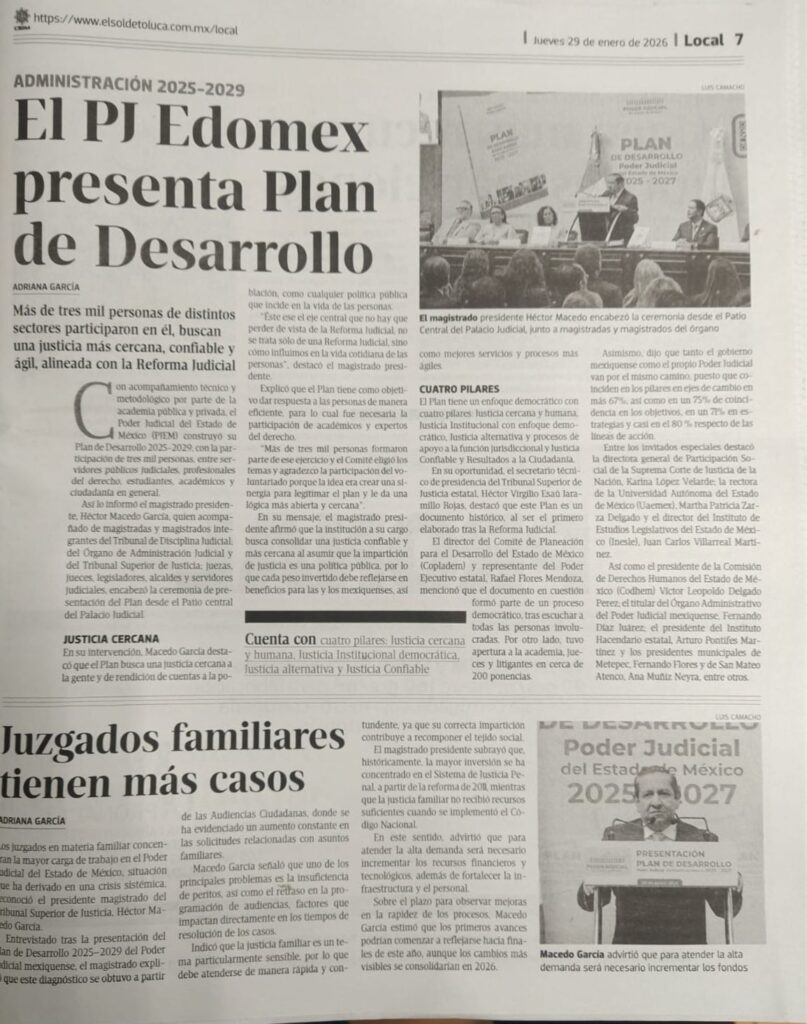 - https://lacallelibre.com.mx/2026/01/29/poder-judicial-del-edomex-presento-su-plan-de-desarrollo-2025-2027/
