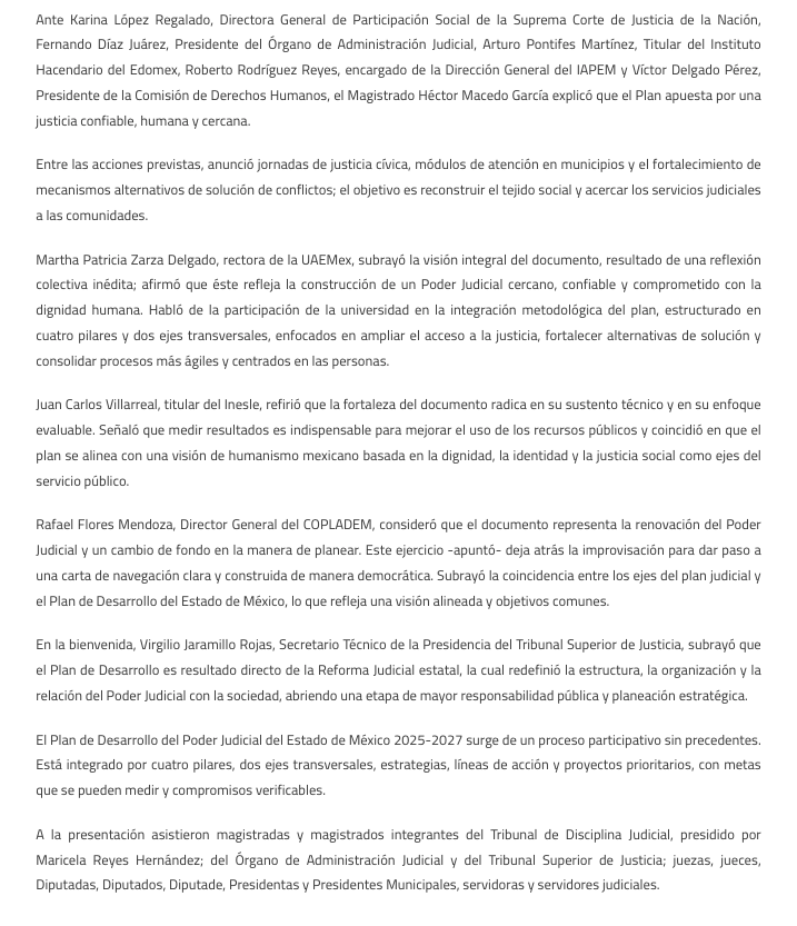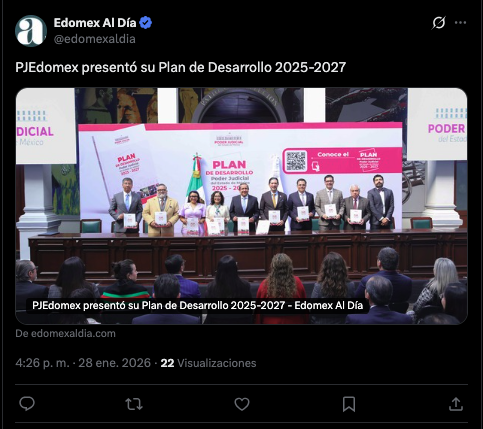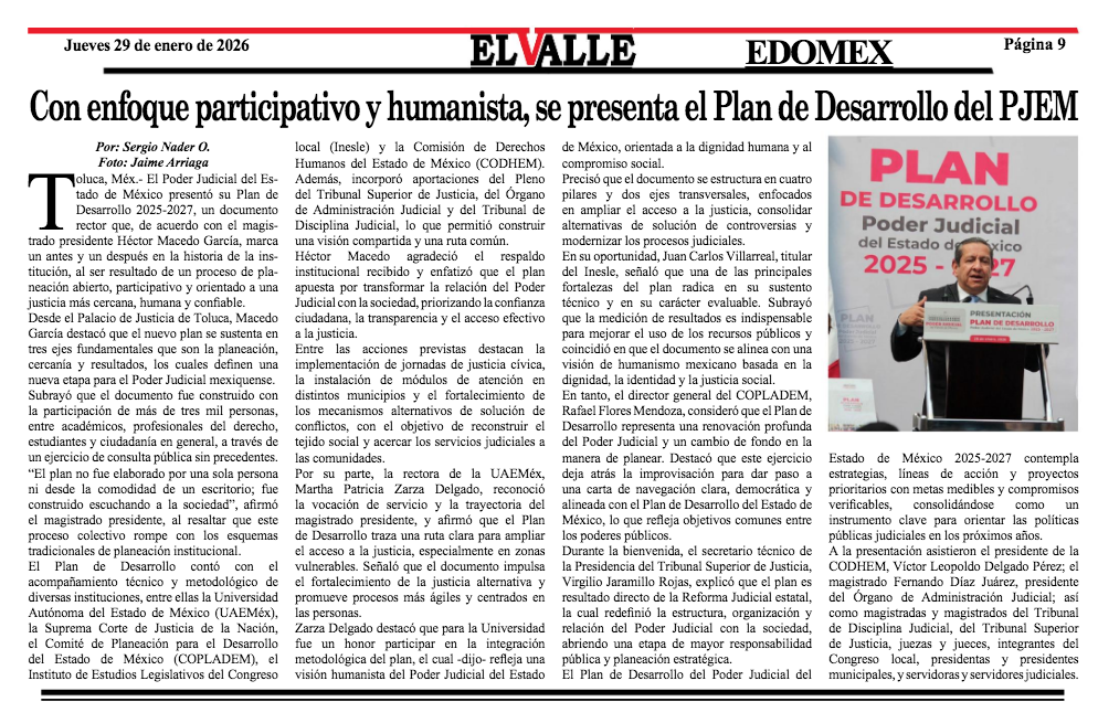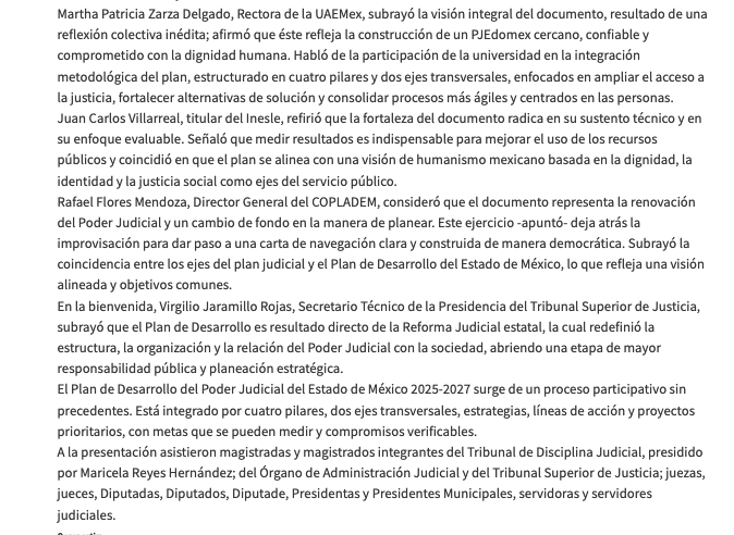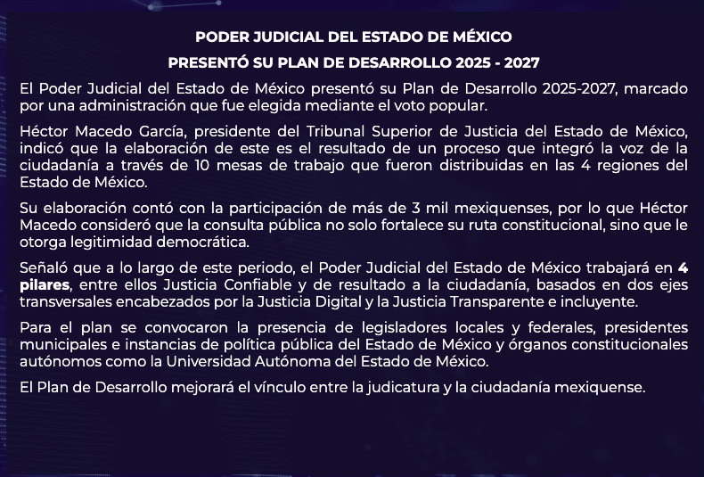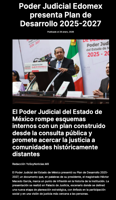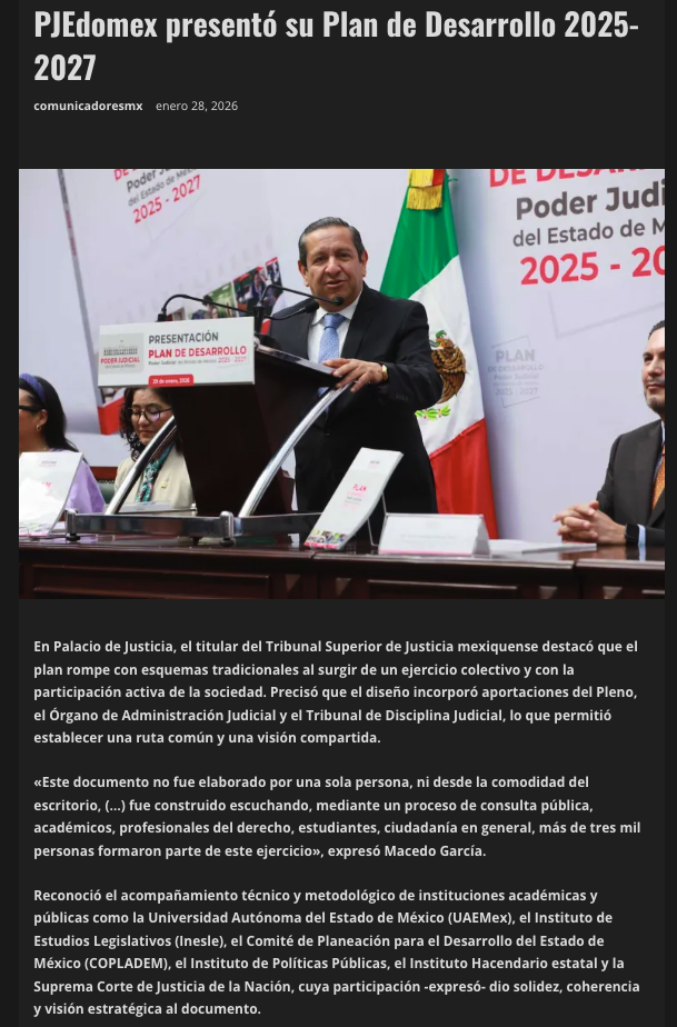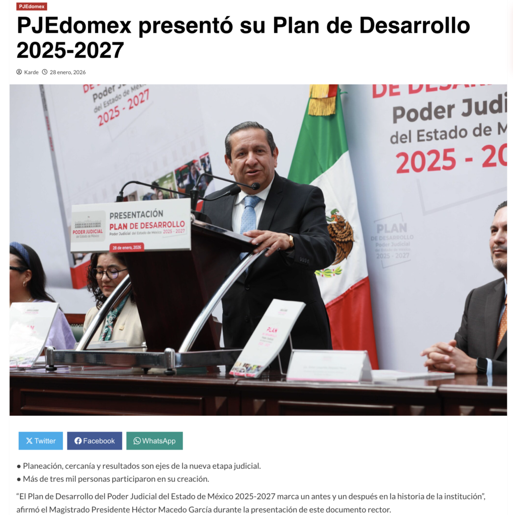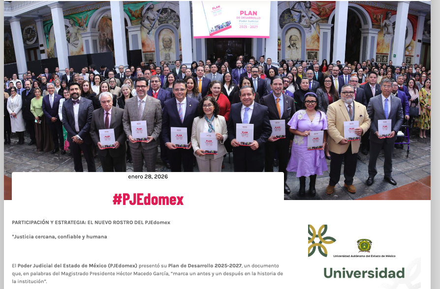 - https://edomexahora.com/2026/01/28/poder-judicial-presenta-su-plan-de-desarrollo-2025-2027-promete-justicia-mas-cercana-y-medible/