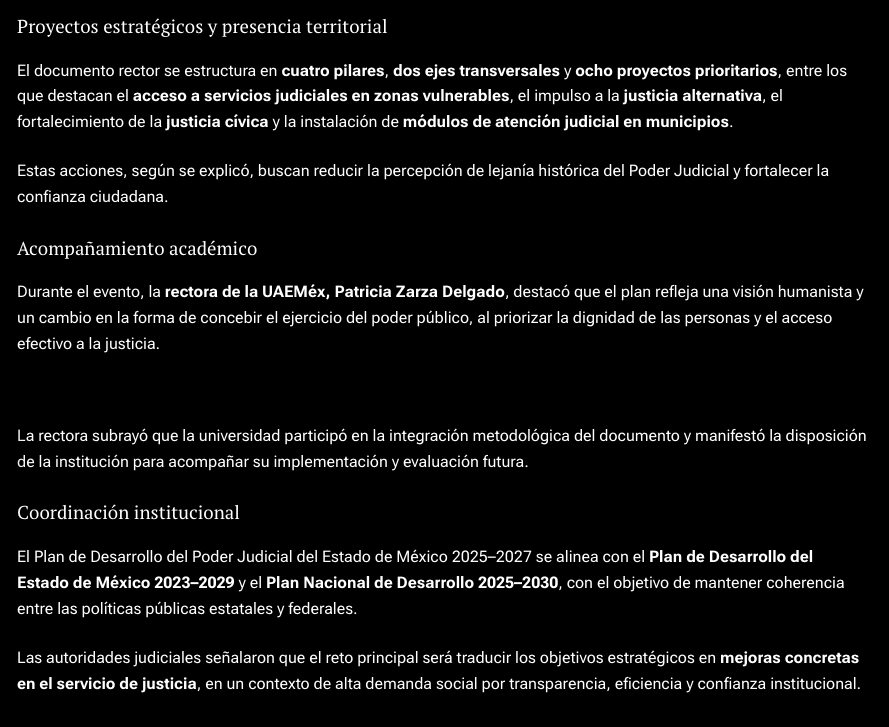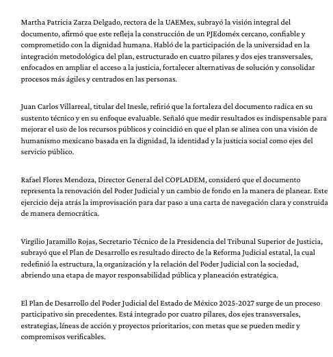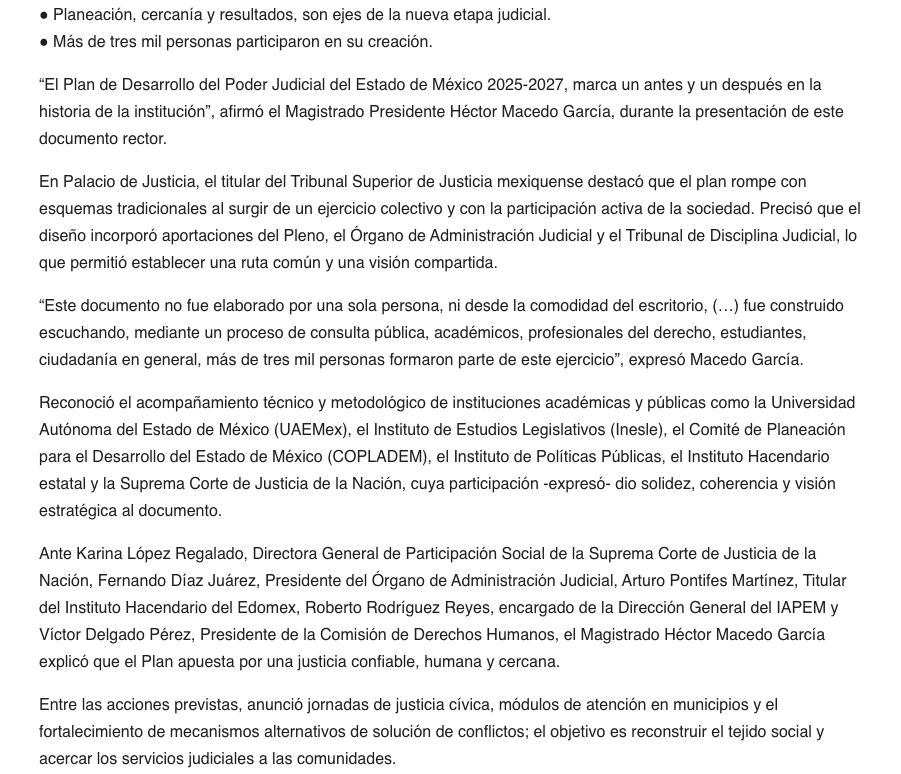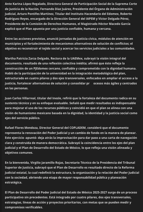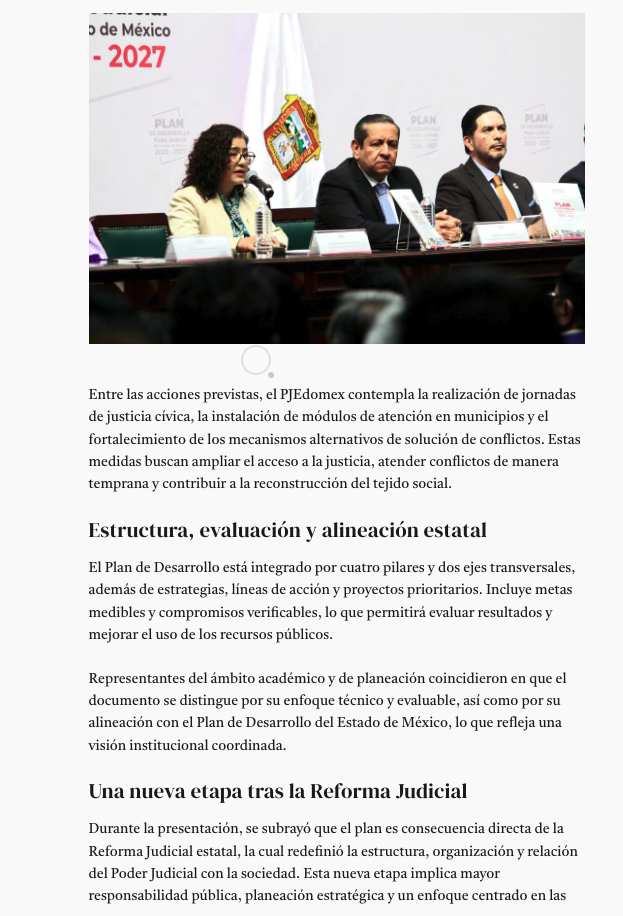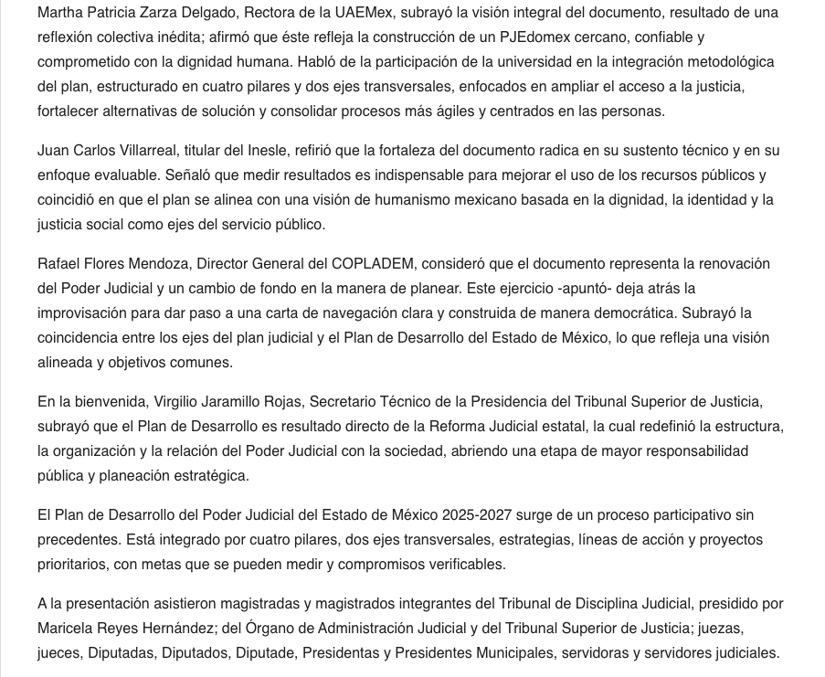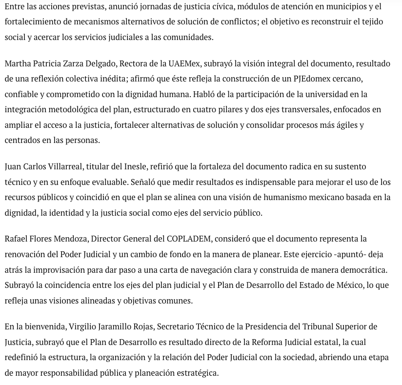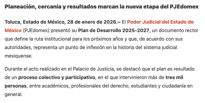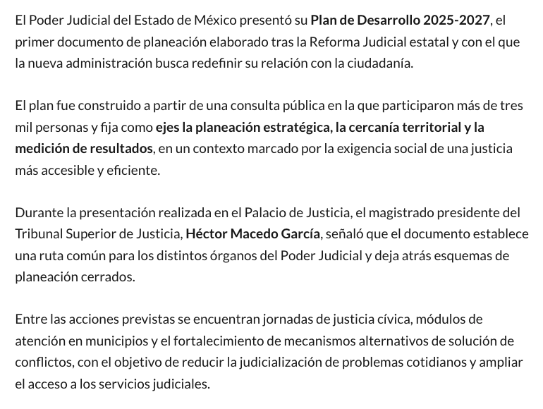 - https://edomexahora.com/2026/01/28/poder-judicial-presenta-su-plan-de-desarrollo-2025-2027-promete-justicia-mas-cercana-y-medible/