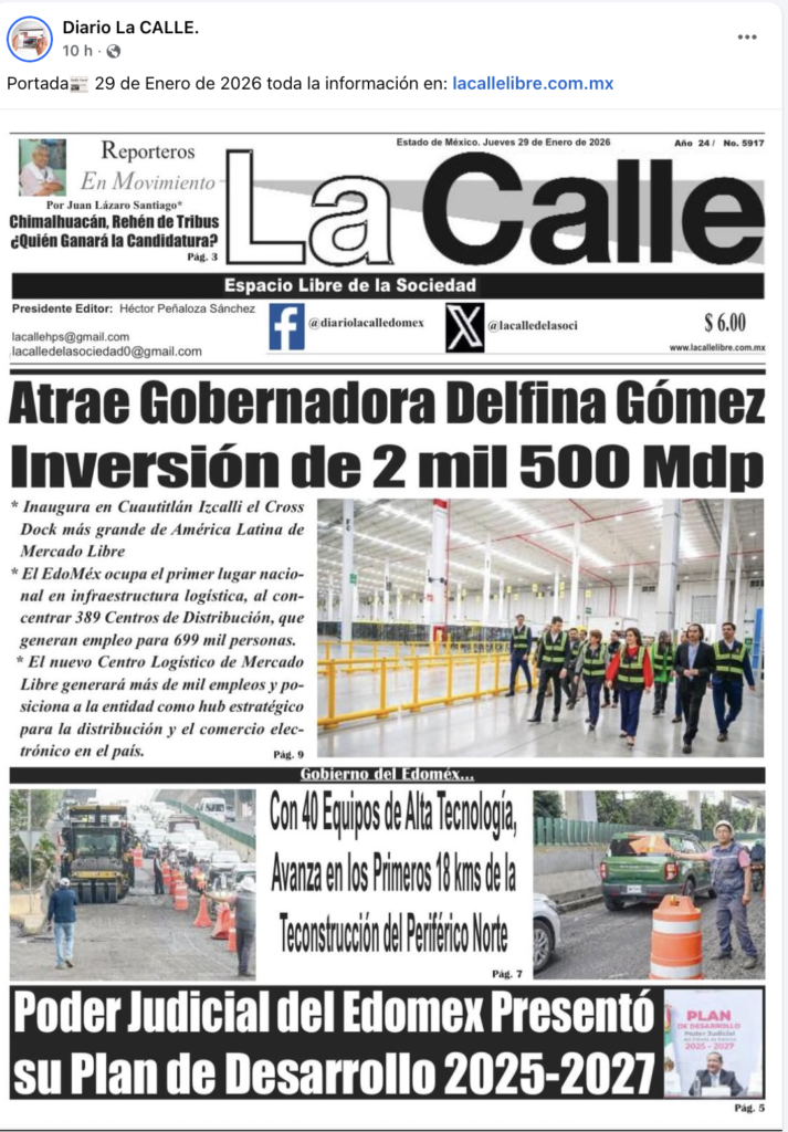 - https://www.facebook.com/diariolacalledomex/posts/pfbid022JxFghUuGyMT3YPKhPSrbTMGQTRfxz5RURDUwtkCwAwFWiLYQb3sWSyymPDL54zUl