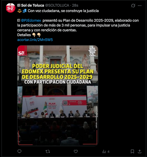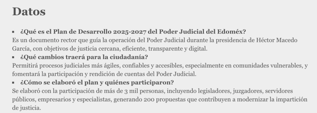 • https://oem.com.mx/elsoldetoluca/local/poder-judicial-del-edomex-presenta-su-plan-de-desarrollo-2025-2029-con-participacion-ciudadana-28030539