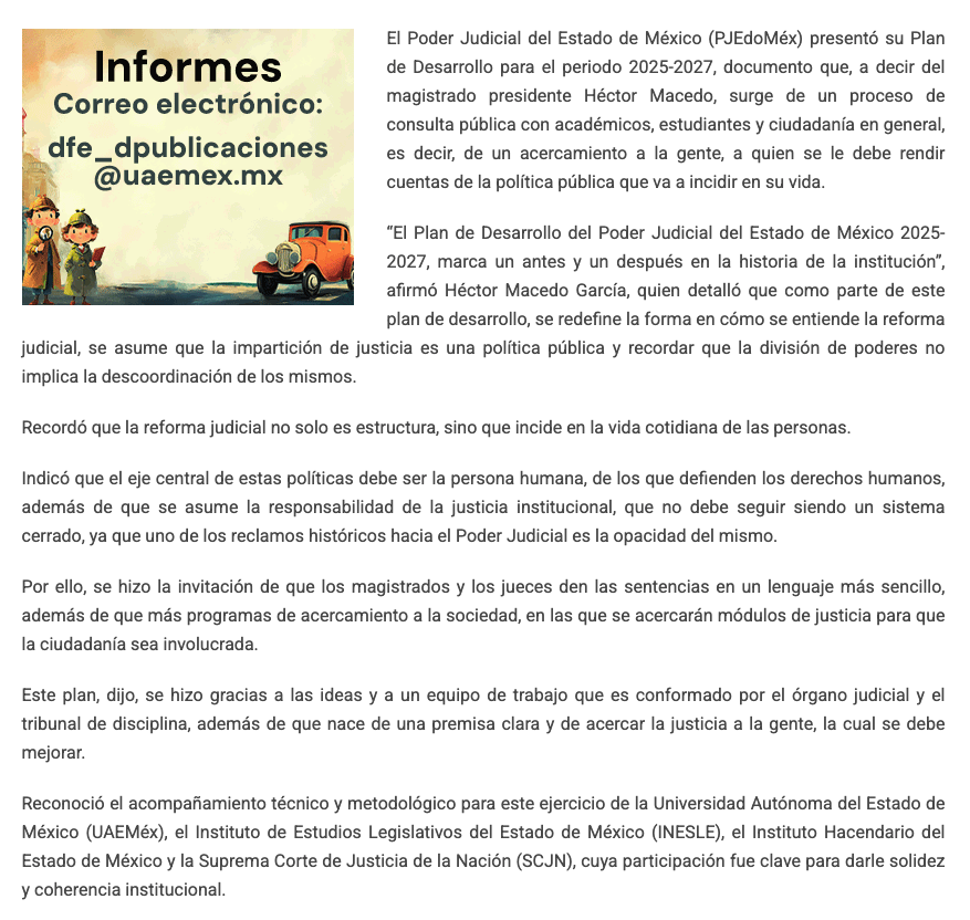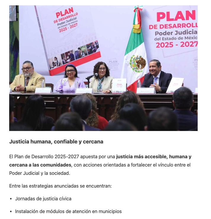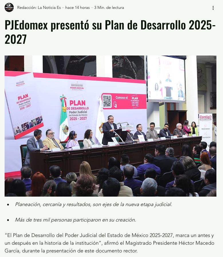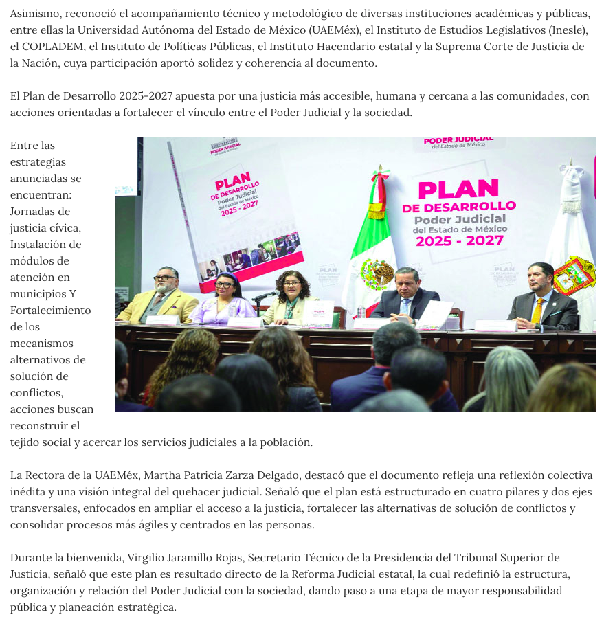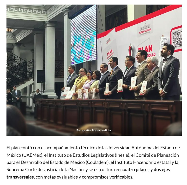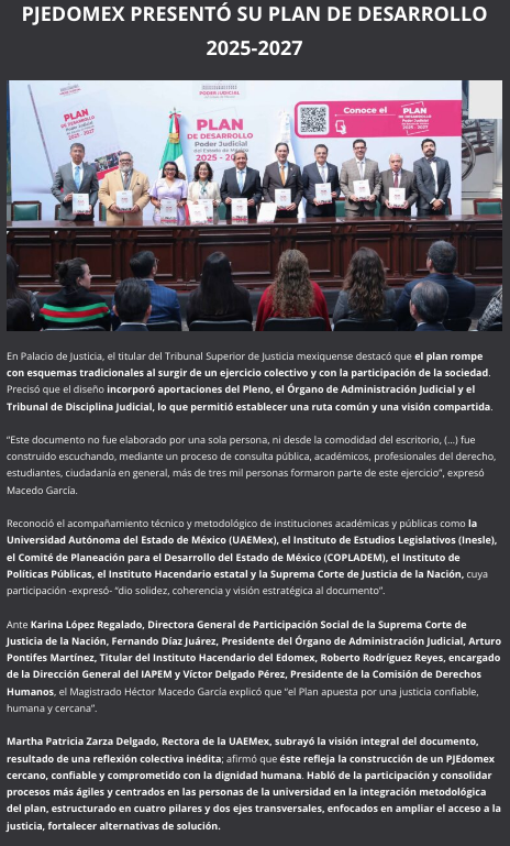 - https://informativomexiquense.com/edomex/pjedomex-presenta-el-plan-de-desarrollo-judicial-2025-2027-para-una-justicia-mas-cercana