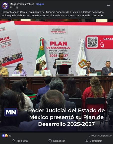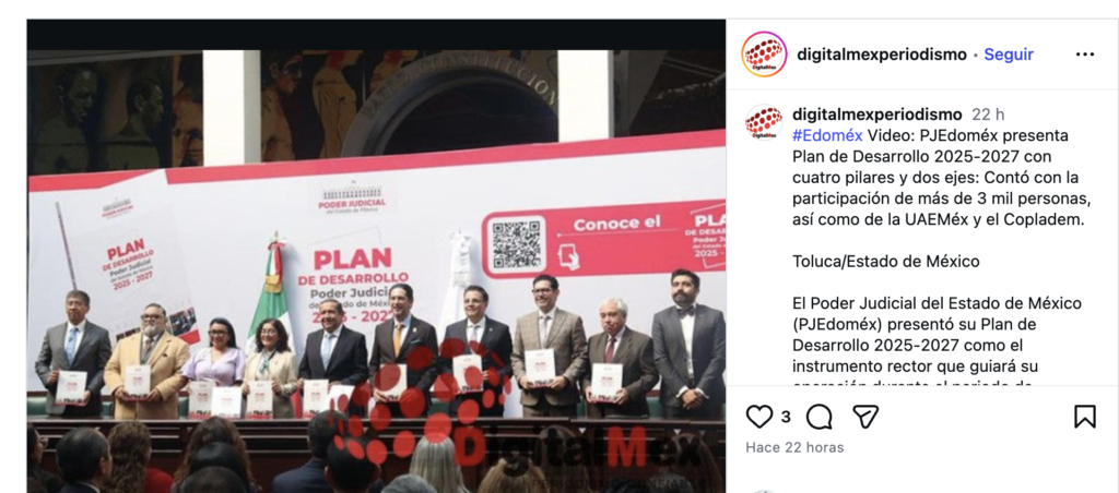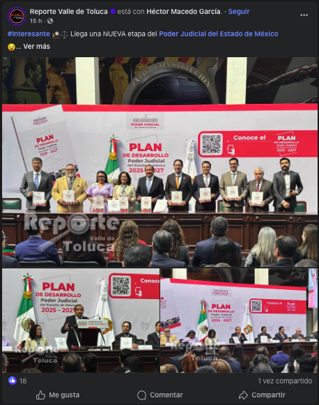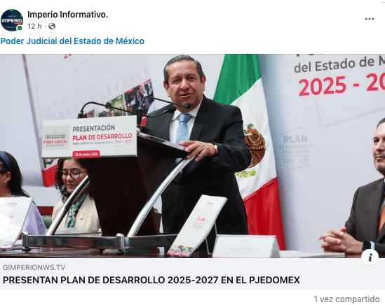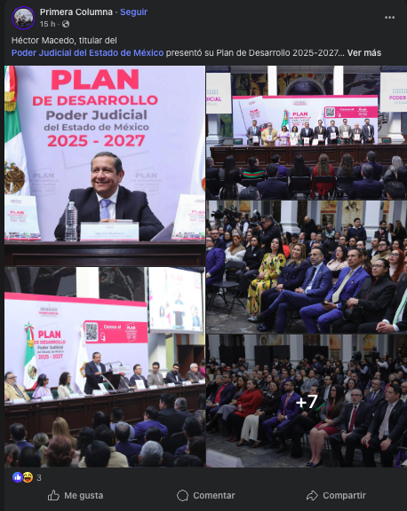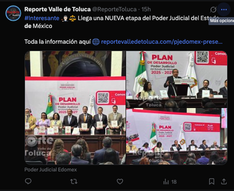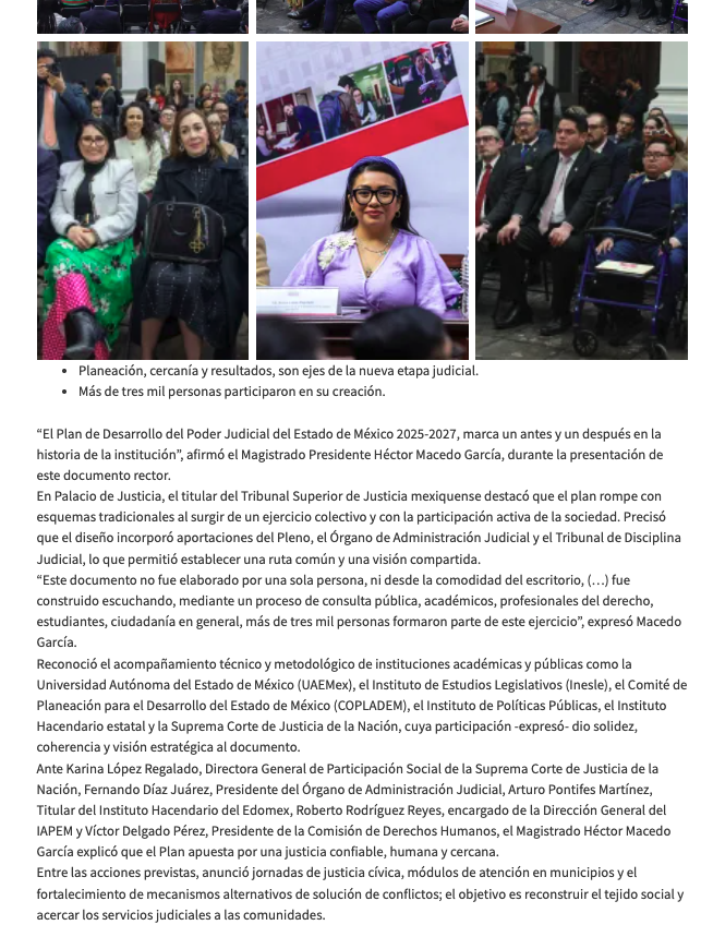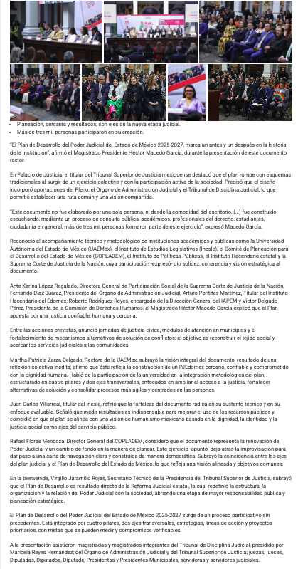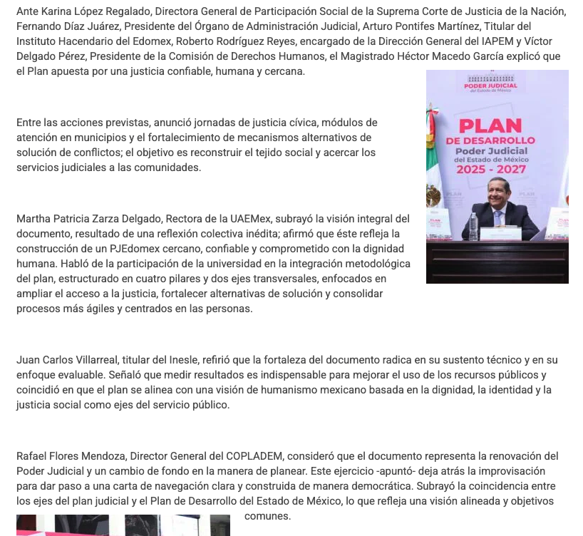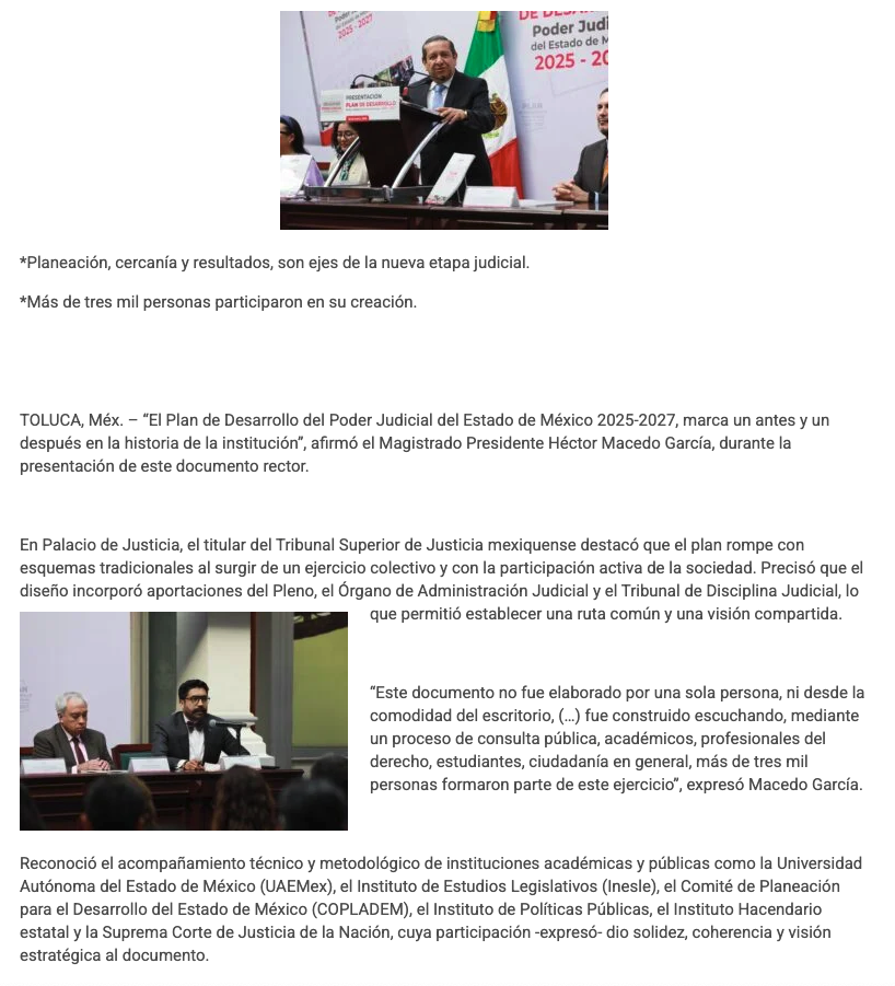 - https://www.reporte3.mx/presentan-plan-desarrollo-2025-2027-del-poder-judicial-del-estado-mexico/