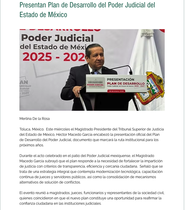 - https://reportv.com.mx/2026/01/28/presentan-plan-de-desarrollo-del-poder-judicial-del-edomex-2025-2027-tras-reforma-judicial/