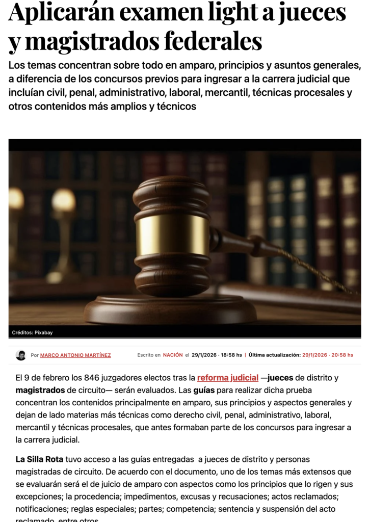 - https://lasillarota.com/nacion/2026/1/29/aplicaran-examen-light-jueces-magistrados-federales-582963.html