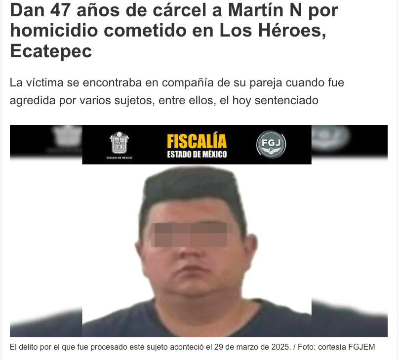 - https://oem.com.mx/la-prensa/policiaca/dan-47-anos-de-carcel-a-martin-n-por-homicidio-cometido-en-los-heroes-ecatepec-28120890