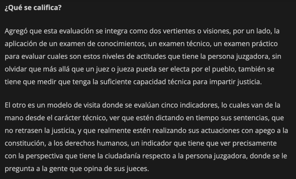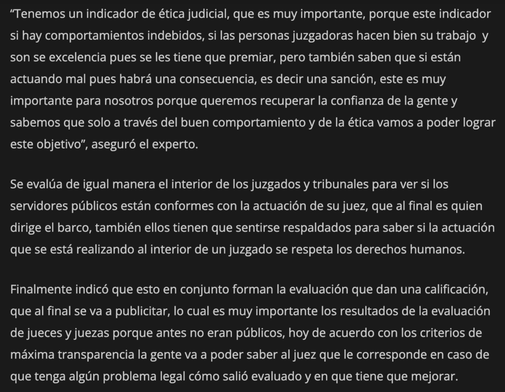 El magistrado del Tribunal de Disciplina Judicial indicó que también se tiene la facultad para evaluar a las personas juzgadoras que resultaron electas con la reforma que se tuvo a nivel constitucional que lo que busca es que la gente pueda elegir de manera democrática a quienes imparten justicia, además de otras facultades que están enfocadas desde luego a investigación y sanción de conductas administrativas que puedas resultar indebidas o que atenten contra el sistema de justicia.
