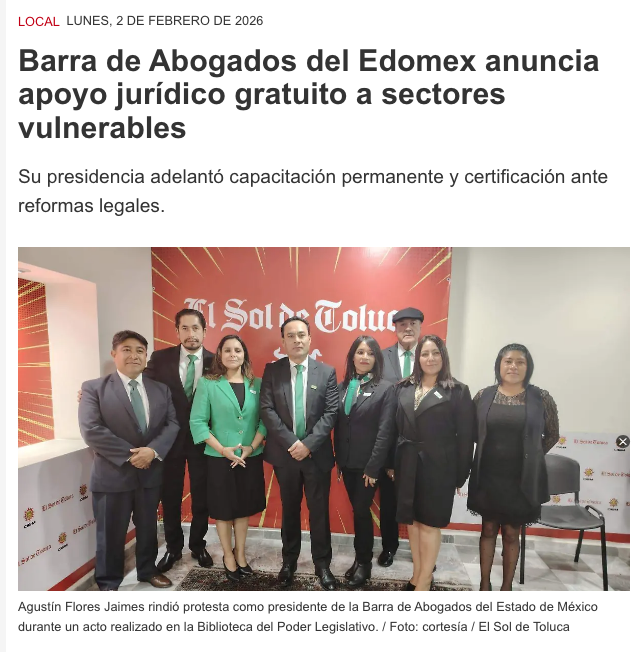 - https://oem.com.mx/elsoldetoluca/local/barra-de-abogados-del-edomex-anuncia-apoyo-juridico-gratuito-a-sectores-vulnerables-28149056