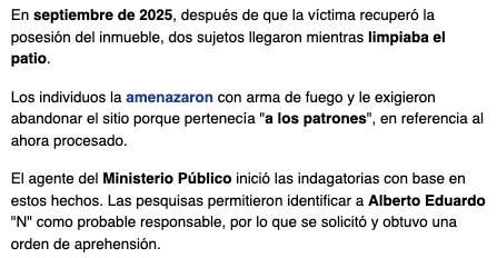 Un juez del Poder Judicial del Estado de México vinculó a proceso a Alberto Eduardo “N”, presunto integrante del grupo delictivo autodenominado “Los 300”, por su probable participación en el delito de despojo.