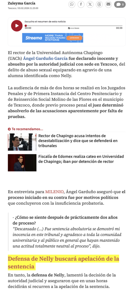 - https://www.milenio.com/comunidad/absuelven-a-rector-universidad-de-chapingo-por-acusacion-abuso-sexual