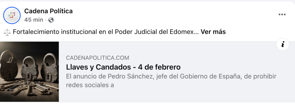 • https://www.facebook.com/Cadena.Politica.Mex/posts/pfbid02nsCH35FcAHe1YoquLx9hnhAGrnyrVDYEVqssSv9Z7uEHwxsju7KrNZHmrkL2YSqul