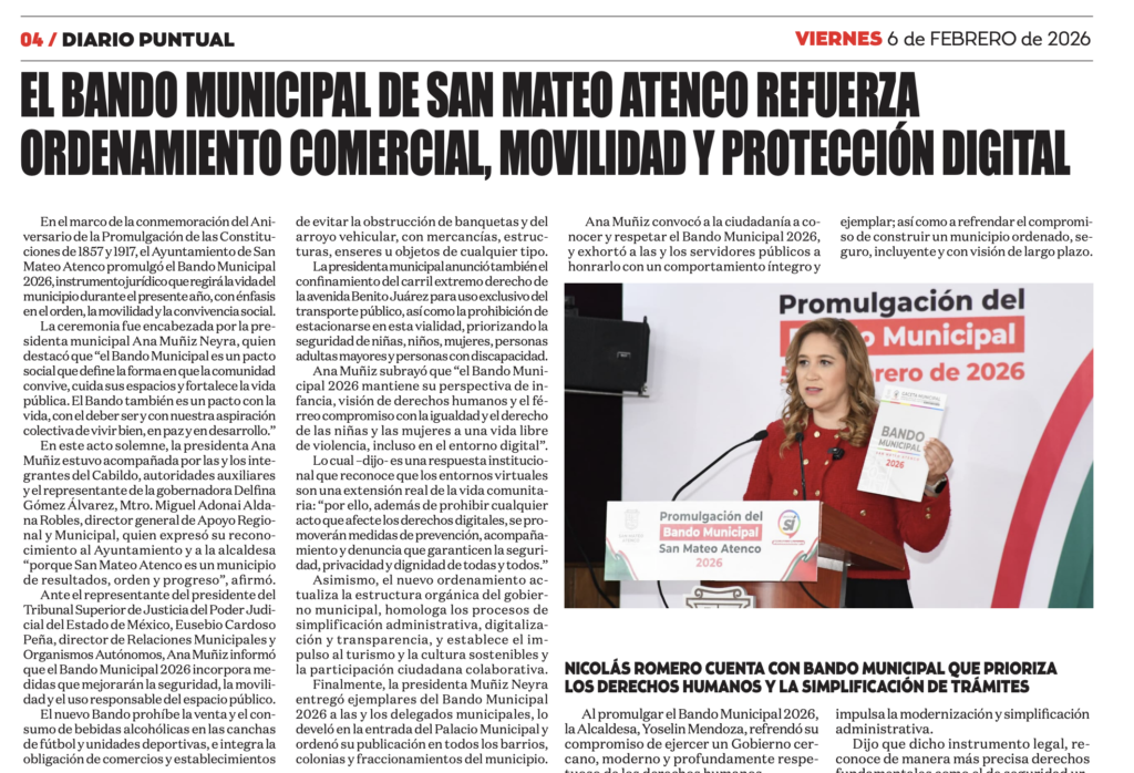 - https://edomexaldia.com/ayuntamiento-de-san-mateo-atenco-promulga-su-bando-municipal-2026-reforzando-ordenamiento-comercial-la-movilidad-y-proteccion-ante-violencia-digital/