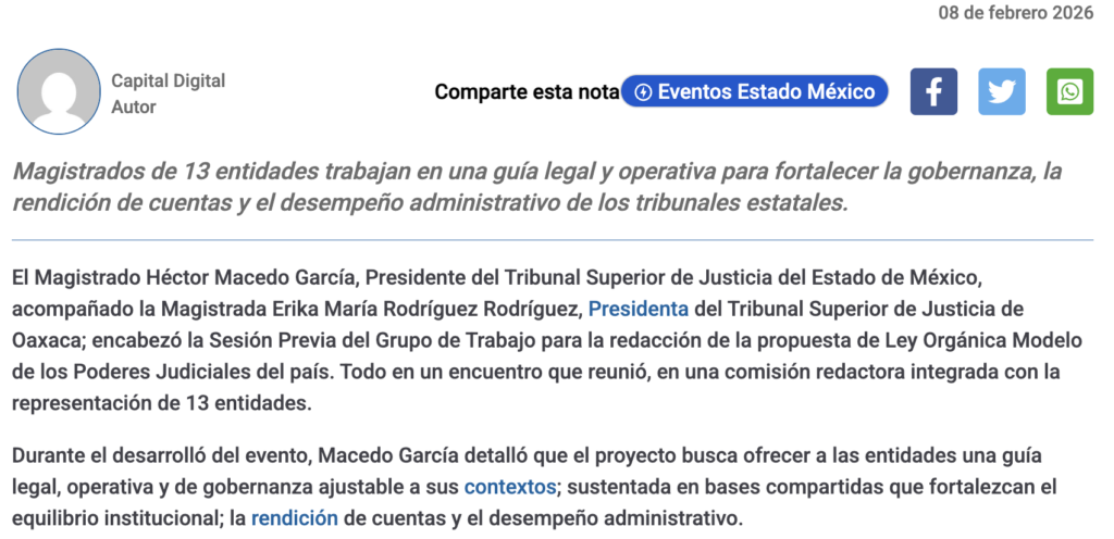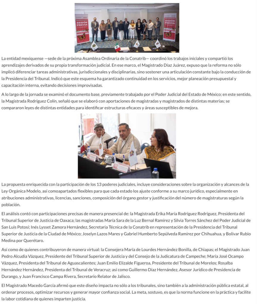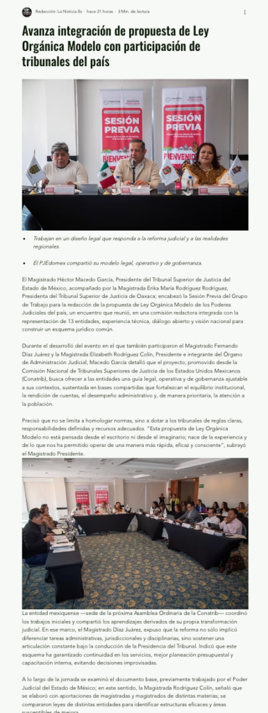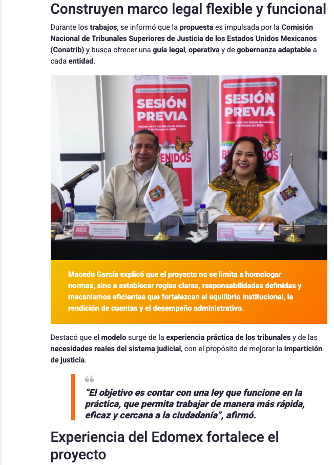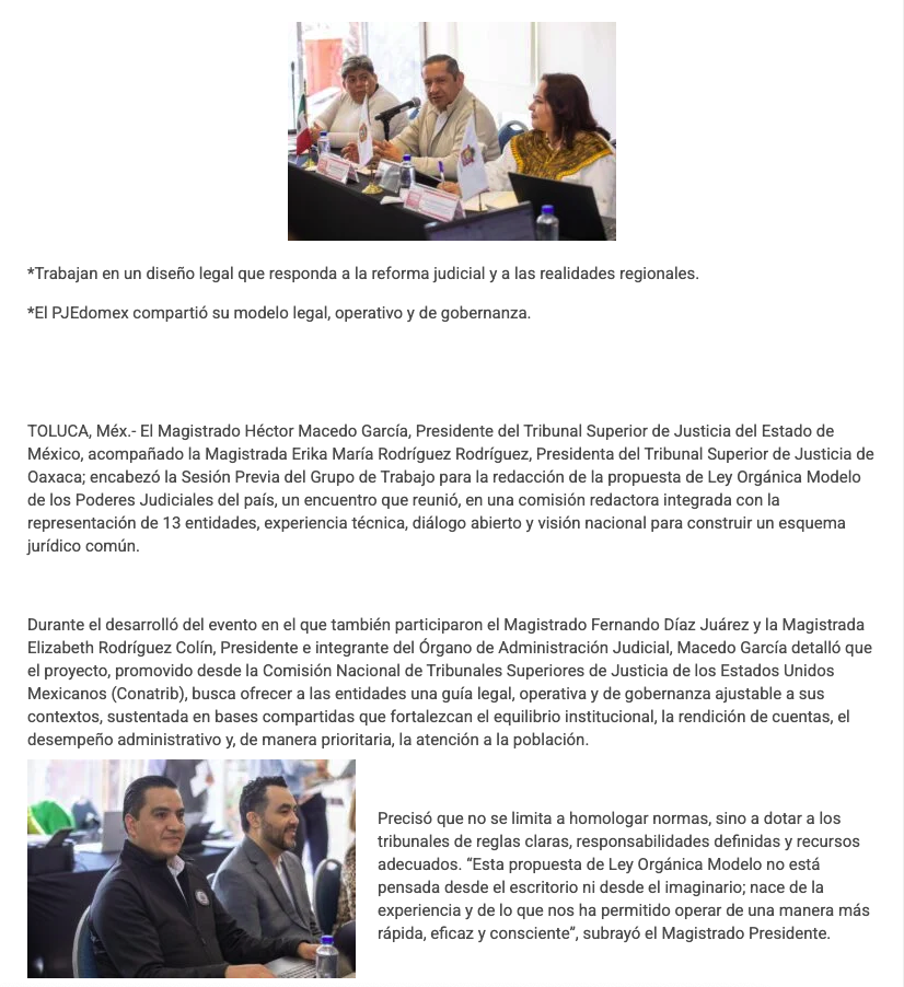 • https://www.capitaledomex.com.mx/local/tribunales-de-edomex-y-oaxaca-lideran-propuesta-de-ley-modelo-para-poderes-judiciales-del-pais/