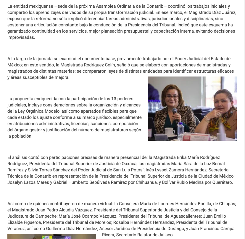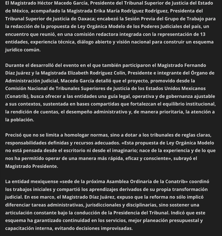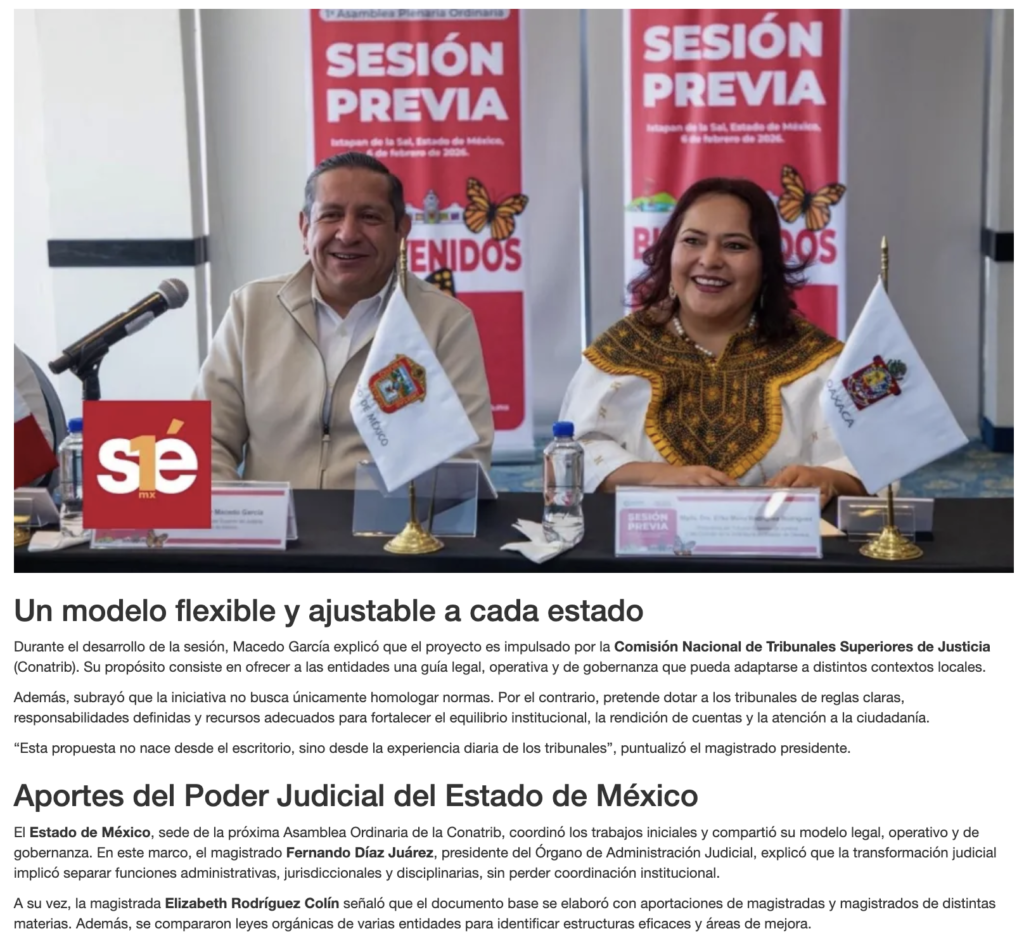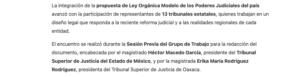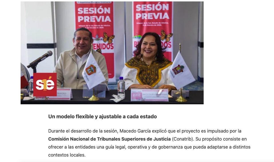 • https://www.capitaledomex.com.mx/local/tribunales-de-edomex-y-oaxaca-lideran-propuesta-de-ley-modelo-para-poderes-judiciales-del-pais/
