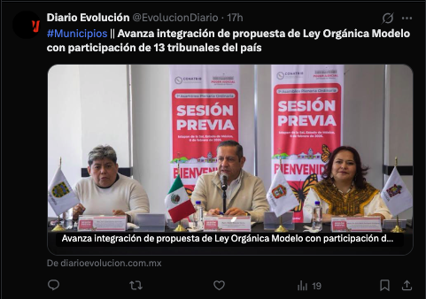 • https://www.diarioevolucion.com.mx/avanza-integracion-de-propuesta-de-ley-organica-modelo-con-participacion-de-13-tribunales-del-pais/