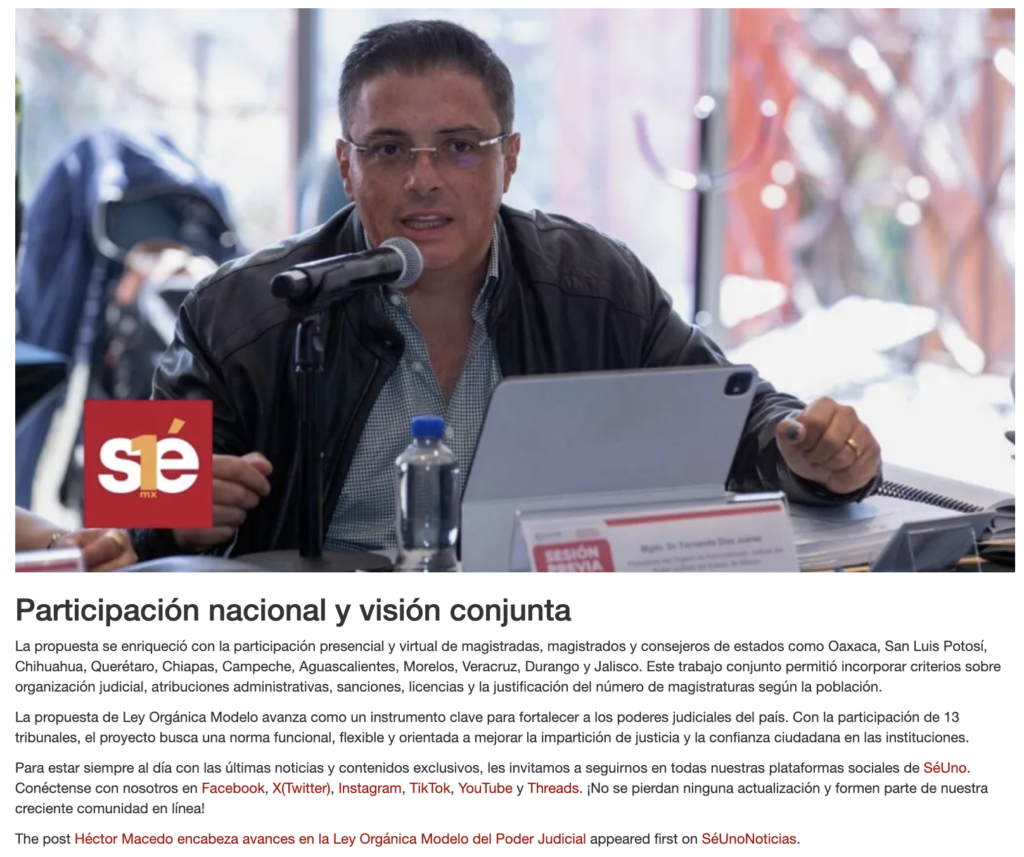 • https://seunonoticias.mx/2026/02/08/hector-macedo-encabeza-avances-en-la-ley-organica-modelo-del-poder-judicial/