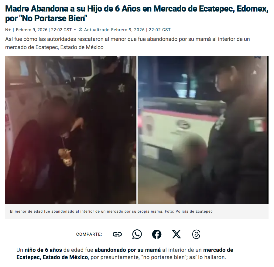 - https://www.nmas.com.mx/estado-de-mexico/madre-abandona-hijo-6-anos-en-mercado-nueva-aragon-ecatepec-edomex-por-no-portarse-bien/