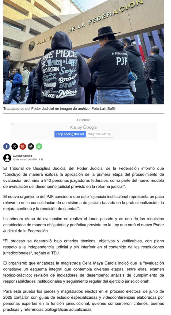 - https://www.jornada.com.mx/noticia/2026/02/12/politica/evaluan-a-840-juzgadores-federales-en-primera-etapa-del-nuevo-modelo-judicial