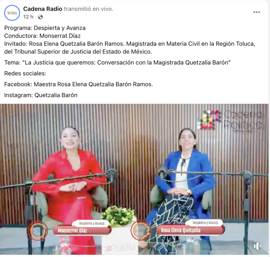 Invitado: Rosa Elena Quetzalia Barón Ramos. Magistrada en Materia Civil en la Región Toluca, del Tribunal Superior de Justicia del Estado de México.