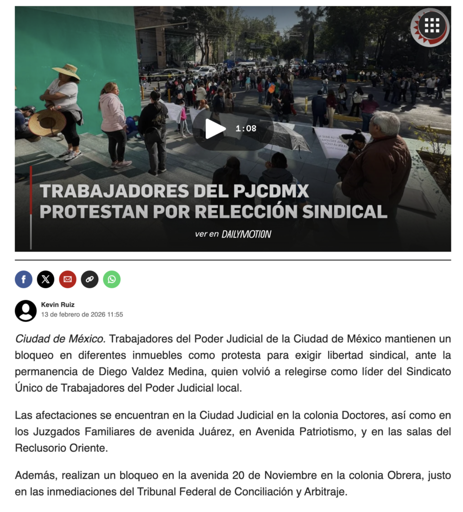 - https://www.jornada.com.mx/noticia/2026/02/13/capital/trabajadores-del-poder-judicial-bloquean-juzgados-en-protesta-por-releccion-sindical