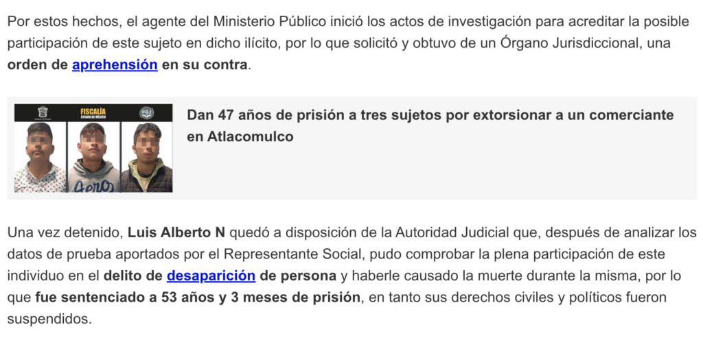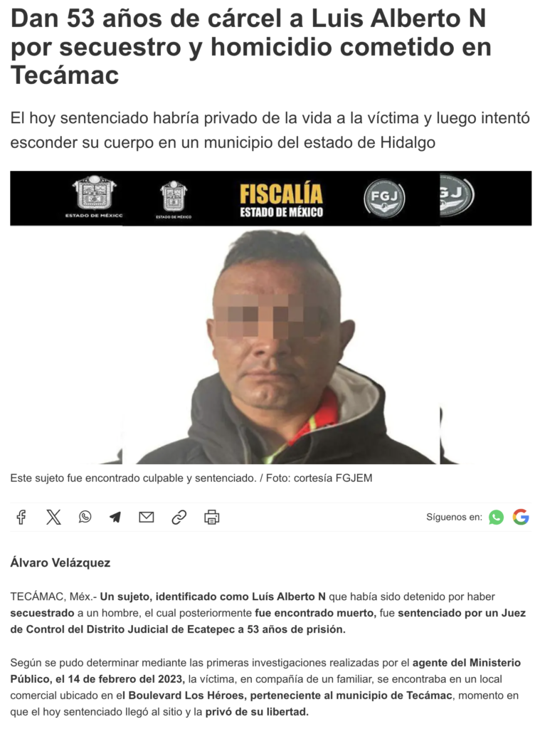 - https://oem.com.mx/la-prensa/policiaca/dan-53-anos-de-carcel-a-luis-alberto-n-por-secuestro-y-homicidio-cometido-en-tecamac-28434896