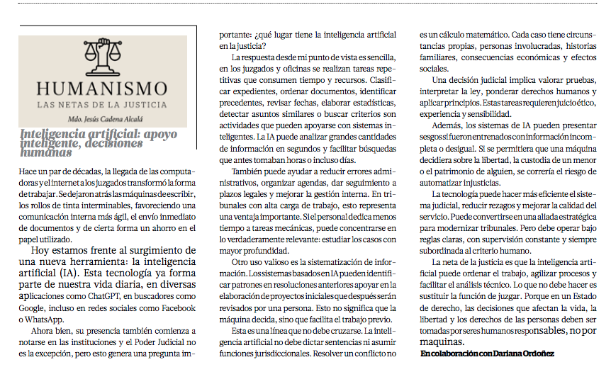 Inteligencia artificial: apoyo inteligente, decisiones humanas – Mdo. Jesús Cadena Alcalá