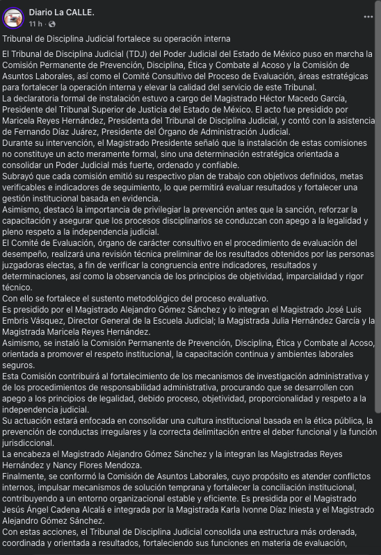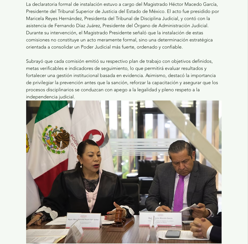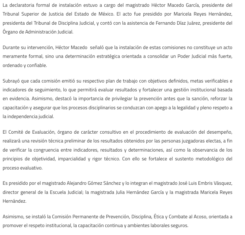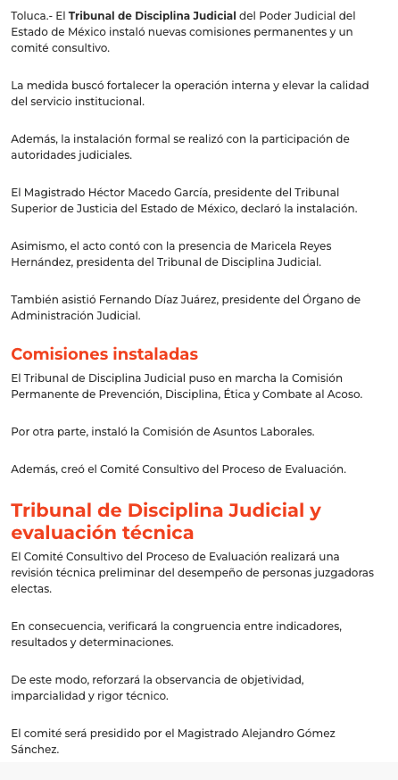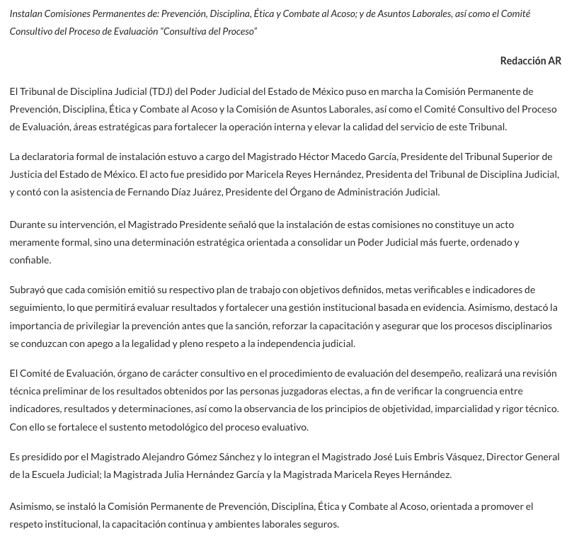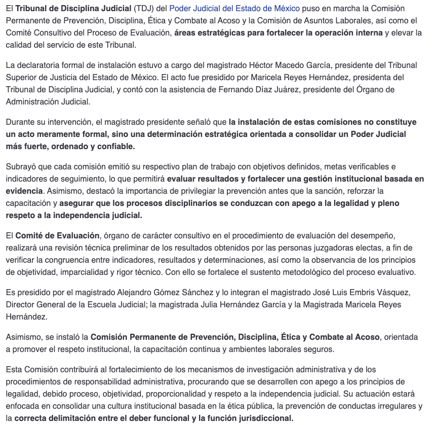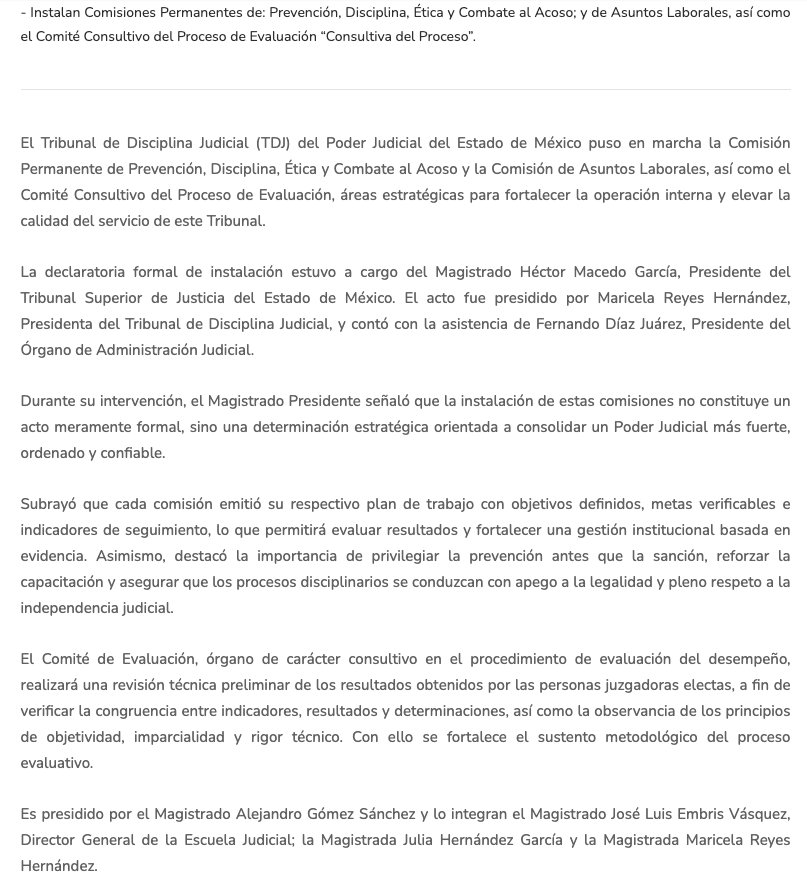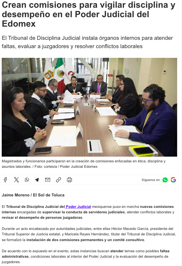 - https://oem.com.mx/elsoldetoluca/local/crean-comisiones-para-vigilar-disciplina-y-desempeno-en-el-poder-judicial-del-edomex-28480064