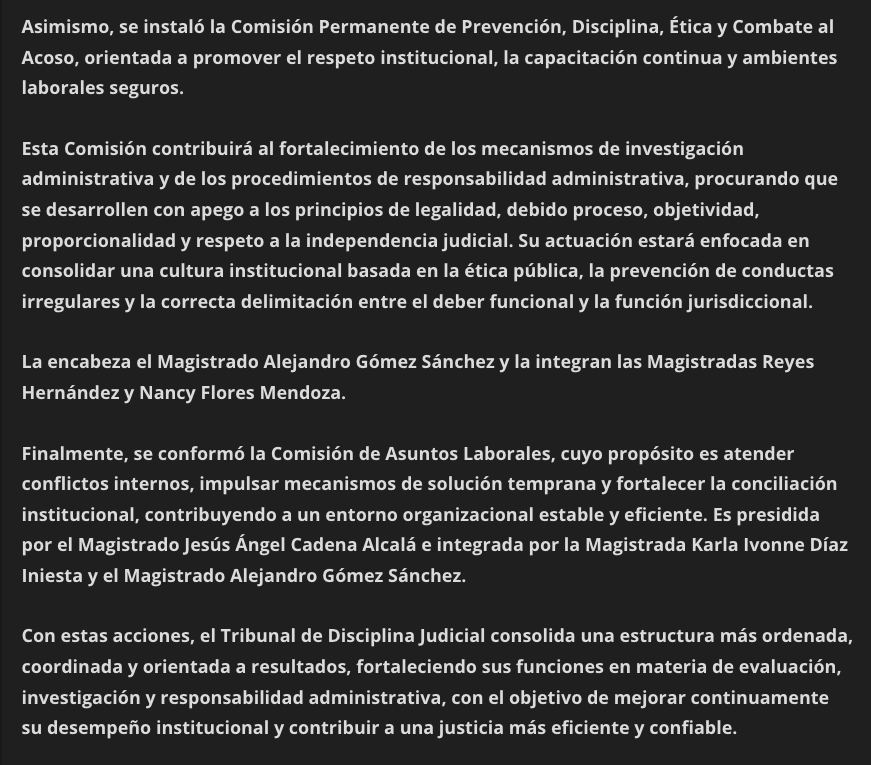 - https://mvt.com.mx/tribunal-de-disciplina-judicial-fortalece-su-estructura-interna-con-nuevas-comisiones-estrategicas/