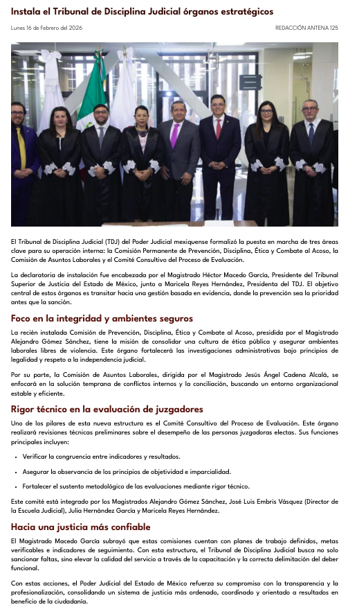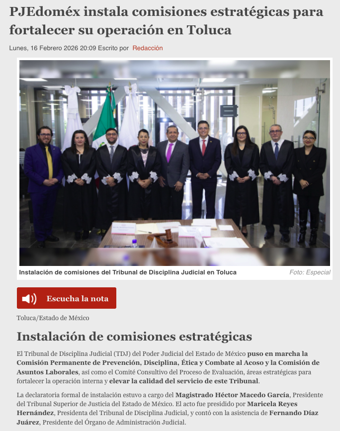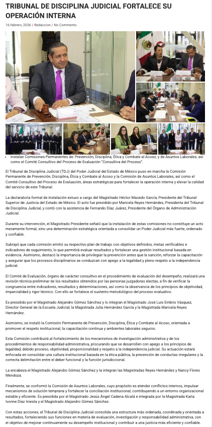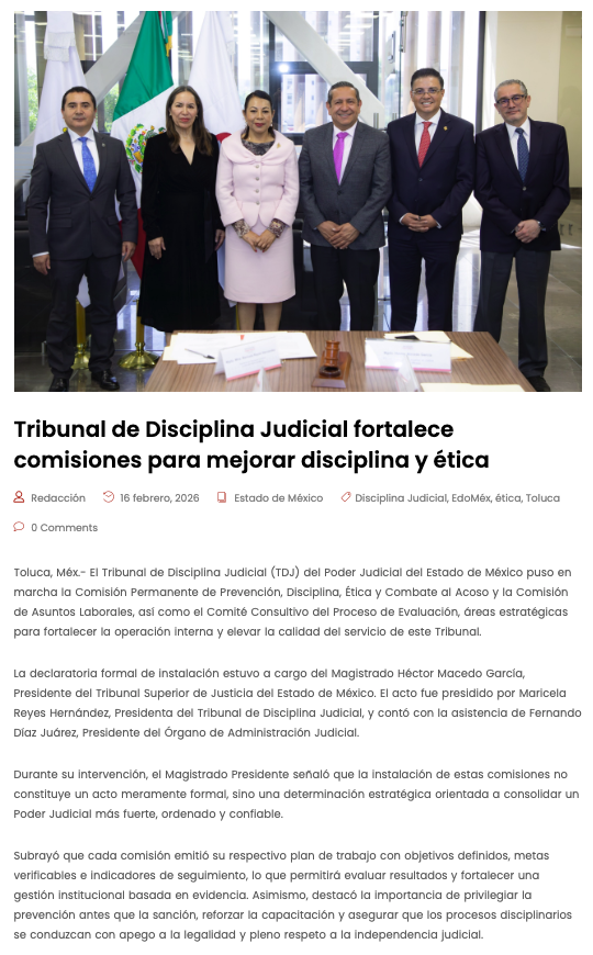 - https://elvalle.com.mx/2026/02/16/tribunal-de-disciplina-judicial-fortalece-comisiones-para-mejorar-disciplina-y-etica/