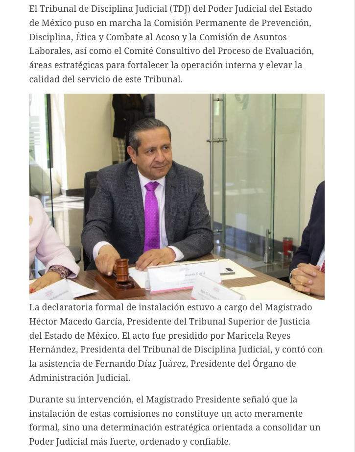 - https://planamayor.com.mx/tribunal-de-disciplina-judicial-edomex-integra-sus-comisiones-y-comites-de-apoyo/